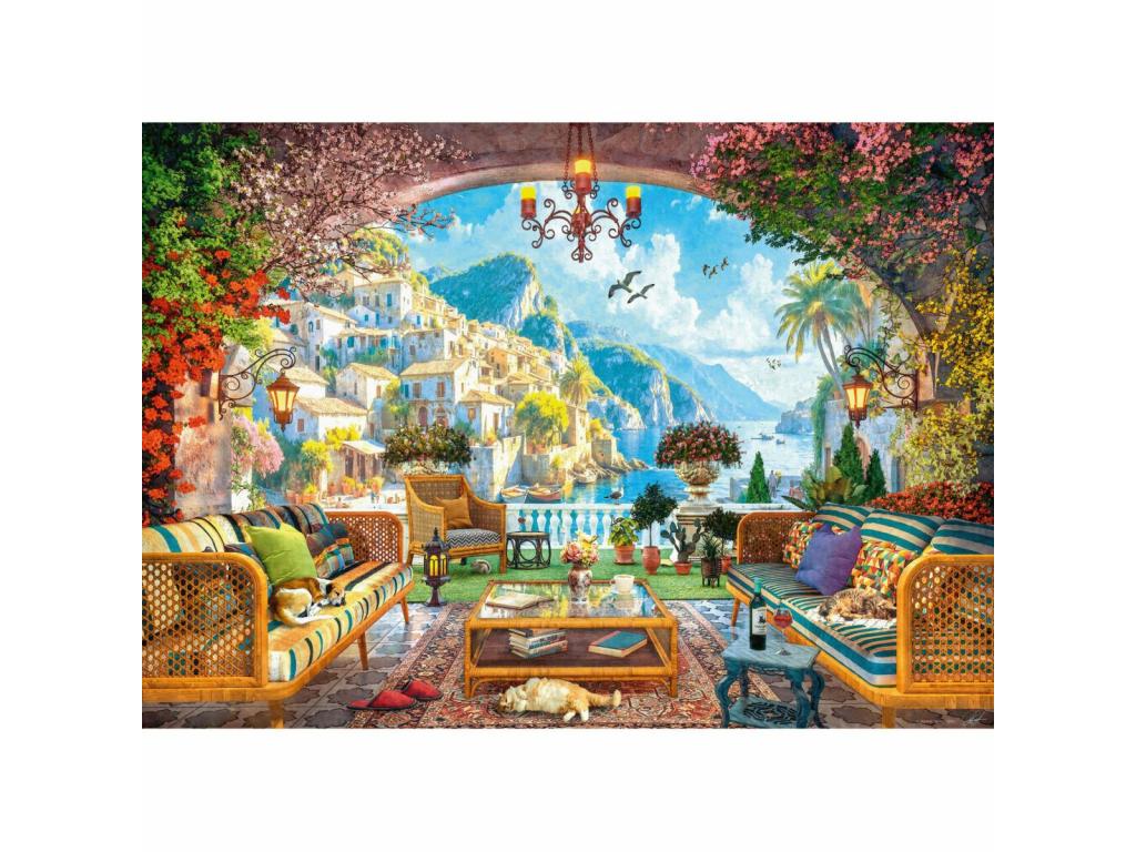 Varázslatos, 1000 darabos puzzle, amelyen egy idilli tengerparti terasz kilátását élvezhetjük. Ez a puzzle kihívást jelentő és hangulatos élményt nyújt. Felnőtteknek és idősebb gyermekeknek ajánlott.