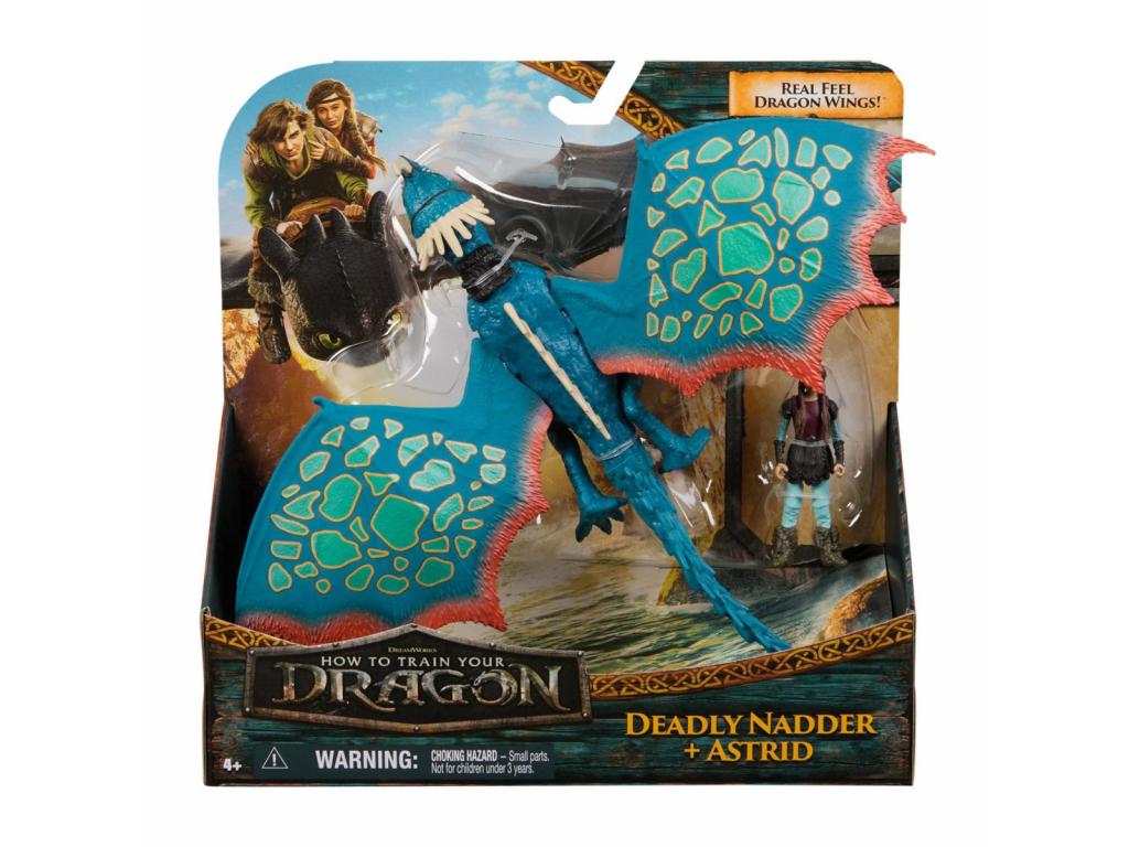 A sárkányok és a viking hősök visszatértek a nagyképernyőre a DreamWorks filmjében. Szereplők: Nadder sárkány és Astrid viking. Ez a hiteles akciófigurákból álló duó hazahozza a sárkányok akcióját. A figurák sok eredeti részletet tartalmaznak, és pontosan olyan menők, mint a filmben. Nadder körülbelül 24 cm hosszú, Astrid pedig körülbelül 7 cm magas. Mindkét figura 7 mozgási ponttal rendelkezik. A fej, a karok és a lábak mozgathatók. Így a játékfigurák életre kelhetnek, és a film kedvenc jelenetei újrajátszhatók. A sárkány szárnyai új, innovatív rugalmassággal rendelkeznek, és lehetővé teszik a felszállás pillanatának megörökítését. Kezdődhet a kalandos repülés! A Spin Master játékok sorozatával, amely a filmhez kapcsolódik, izgalmas sárkánykalandokat élhetünk át otthon. Kaphatók például interaktív figurák, akció- és gyűjtőfigurák, valamint plüss sárkányok is. Minden 4 évesnél idősebb gyermek és sárkányidomár számára.