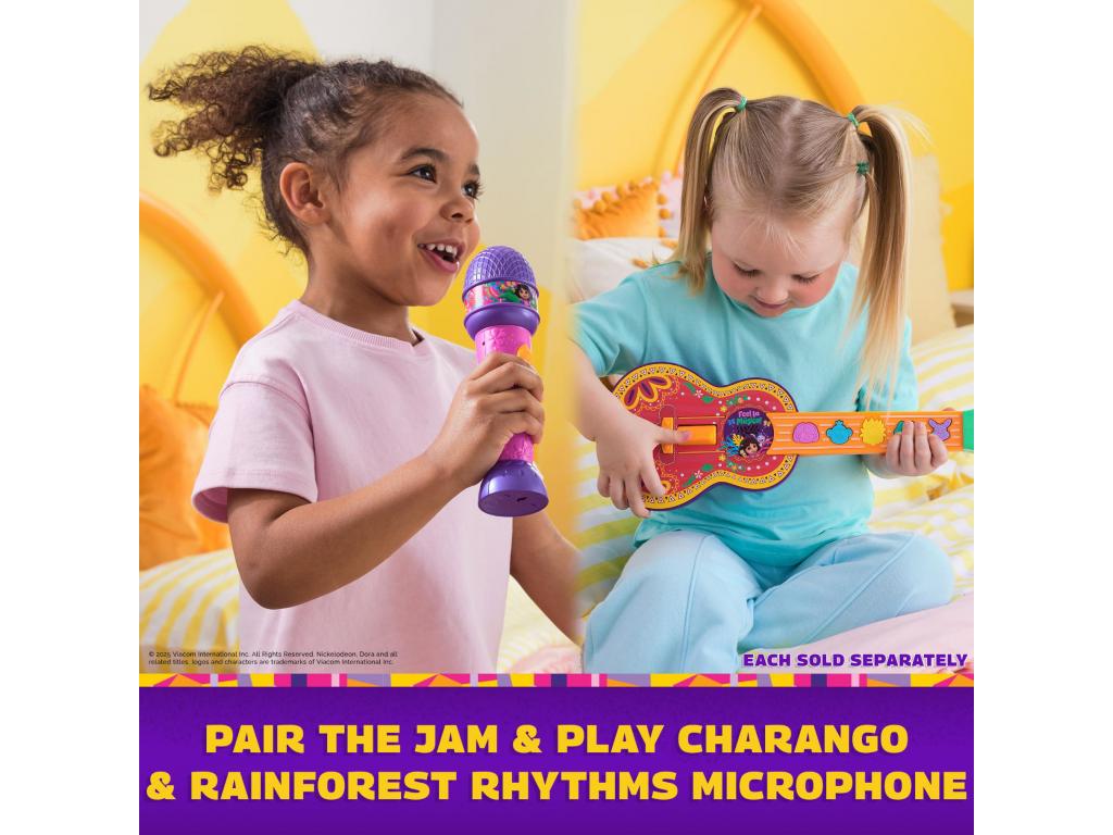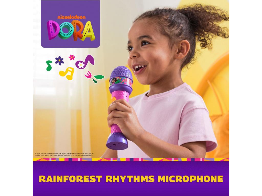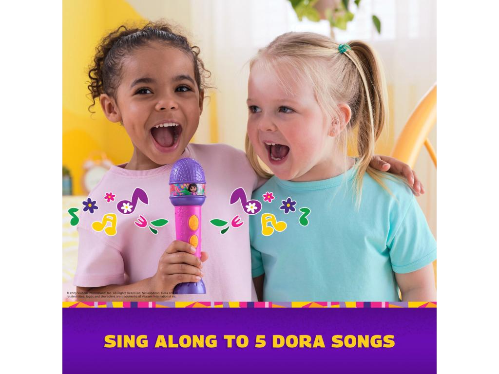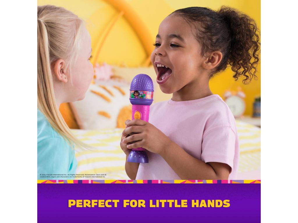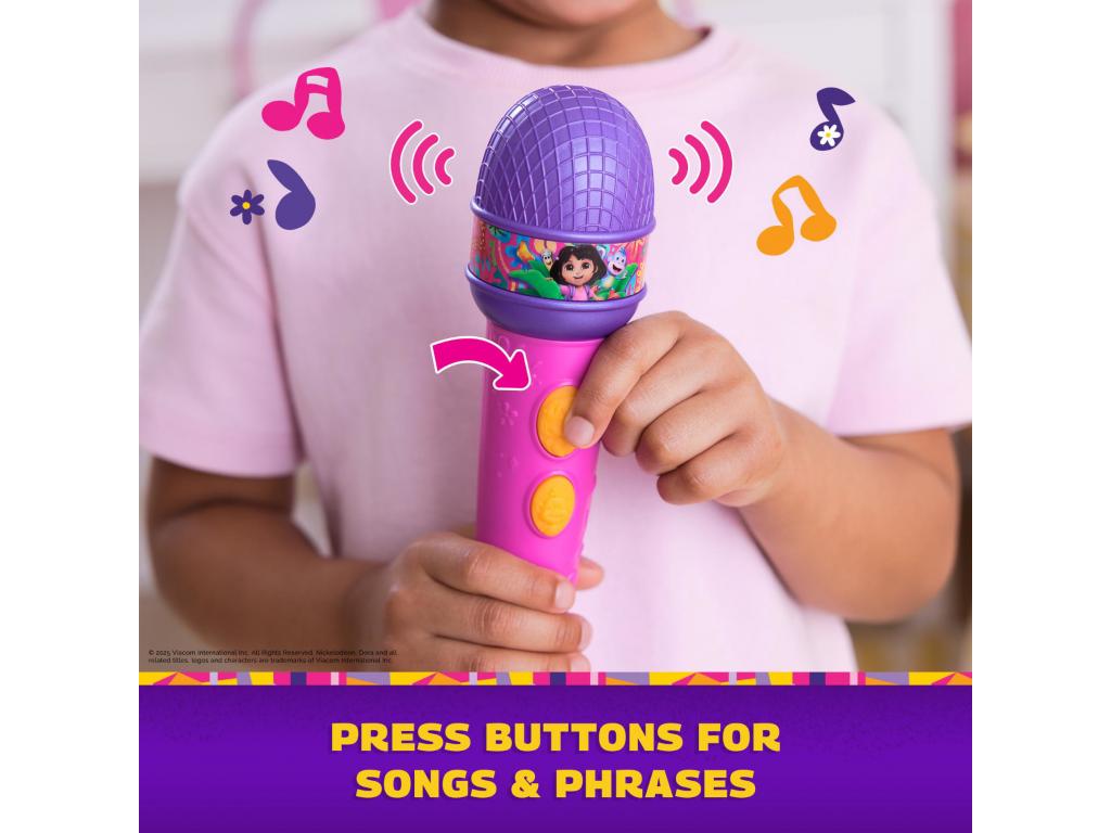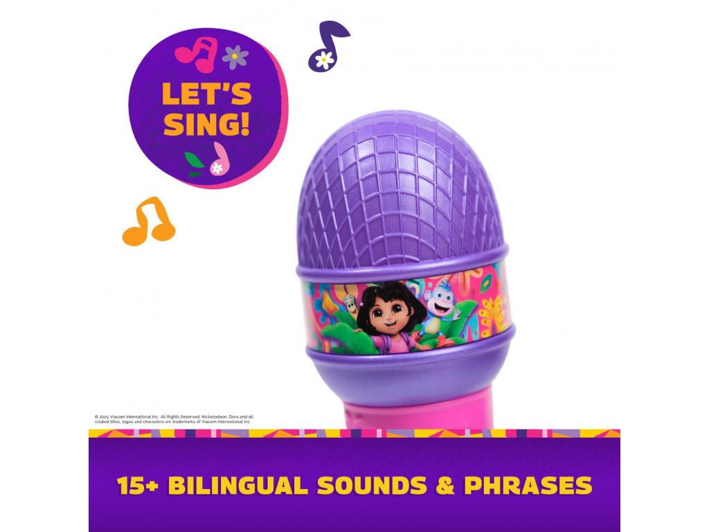 Fedezd fel a Dora mikrofont zenével és hangokkal, amely tökéletes mindenkinek, aki szeret énekelni és játszani! Ezzel a mikrofonnal minden előadás ünneppé válik. Akár kedvenc dalaidat énekled, akár te magad gondoskodsz a zeneiről, a Dora mikrofon extra szórakozást és élményt nyújt. A beépített zene és hanghatásoknak köszönhetően igazi sztárnak érezheted magad a színpadon. Könnyű és egyszerűen használható, így azonnal elkezdhetsz énekelni, ahol és amikor csak akarsz. Ideális partikra, otthoni játékra vagy utazáshoz. Vidám kialakításával, amely azonnal vonzza a gyerekeket, ez a mikrofon ösztönzi a kreativitást és az önbizalmat. Énekelj kedvedre, és mutasd meg tehetségedet a Dora mikrofonnal!
