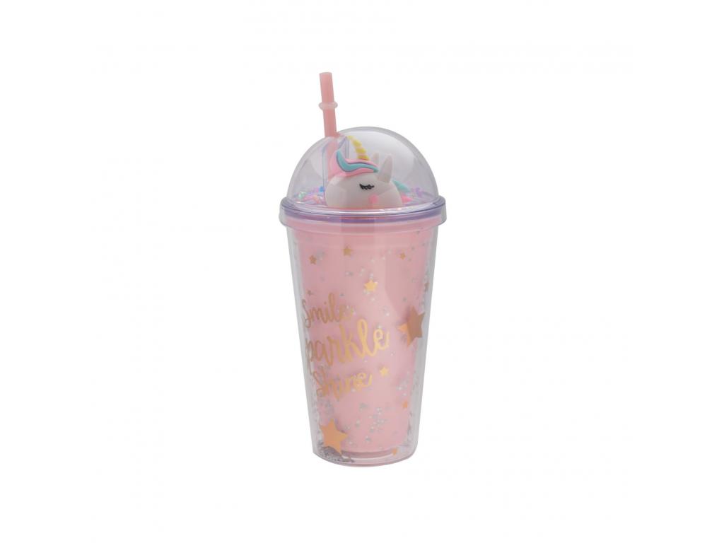 Ivópohár zárható fedéllel és szívószállal. Igazi lányos, rózsaszín egyszarvús dizájnban, praktikus és kényelmesen használható, tökéletes az iskolába vagy kirándulásokra.