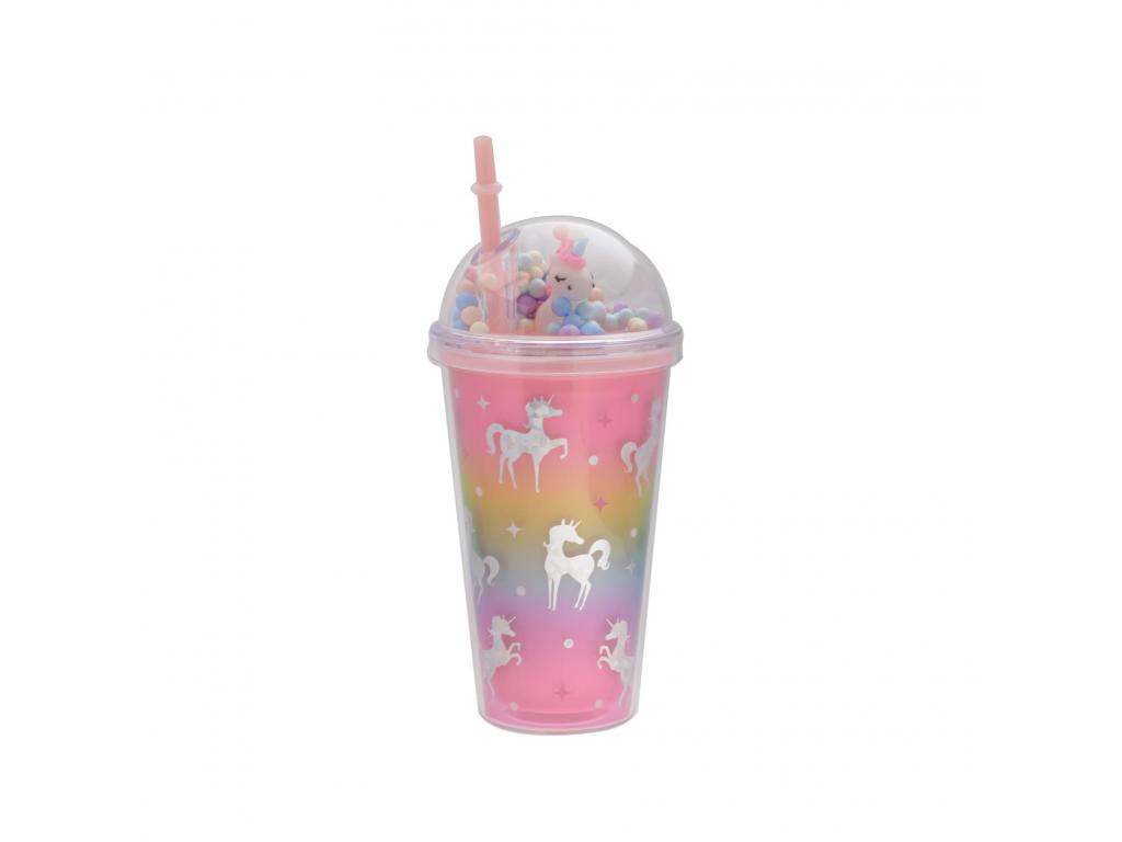 Ivópohár zárható fedéllel és szívószállal. Igazi lányos, fémesen csillogó, rózsaszín egyszarvús dizájnban, praktikus és kényelmesen használható, tökéletes az iskolába vagy kirándulásokra.