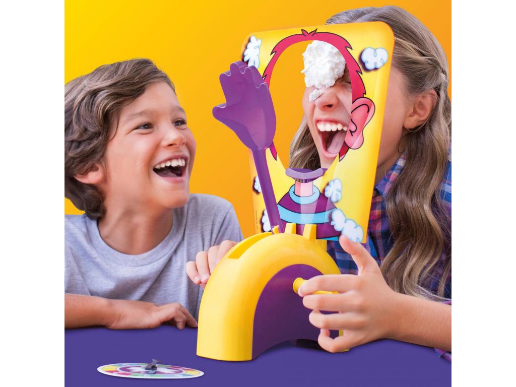 A Pie Face játékkal az egész család vidám szórakozásban részesül, miközben mindenki szerencsét próbál egy izgalmas játékban! Először is rengeteg tejszínhabot kell tenni a dobókarra (nem tartozék, külön kell megvásárolni). A játékosok a körükben megforgatják a forgókarot, hogy megtudják, hányszor kell meghúzni a kart. Ezután a lyukon keresztül néznek, és a szükséges számú alkalommal meghúzzák a kart. Vigyázz... minden forgatásnál eltalálhat a tejszínhab! A játékosok, akiket nem talál el, pontokat kapnak. Az első, aki 25 pontot szerez, nyer! A Pie Face játék egy vicces gyerekjáték születésnapi partikra és játékestékre; az 5 év feletti gyerekeknek szóló óvodás játékok is remek ajándékok.