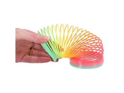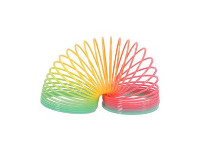 Helyezd ezt a menő, szivárvány színekben pompázó rugós játékot a lépcsőre, adj neki egy lökést, és le fog futni a lépcsőn! Nagyon vicces látvány.