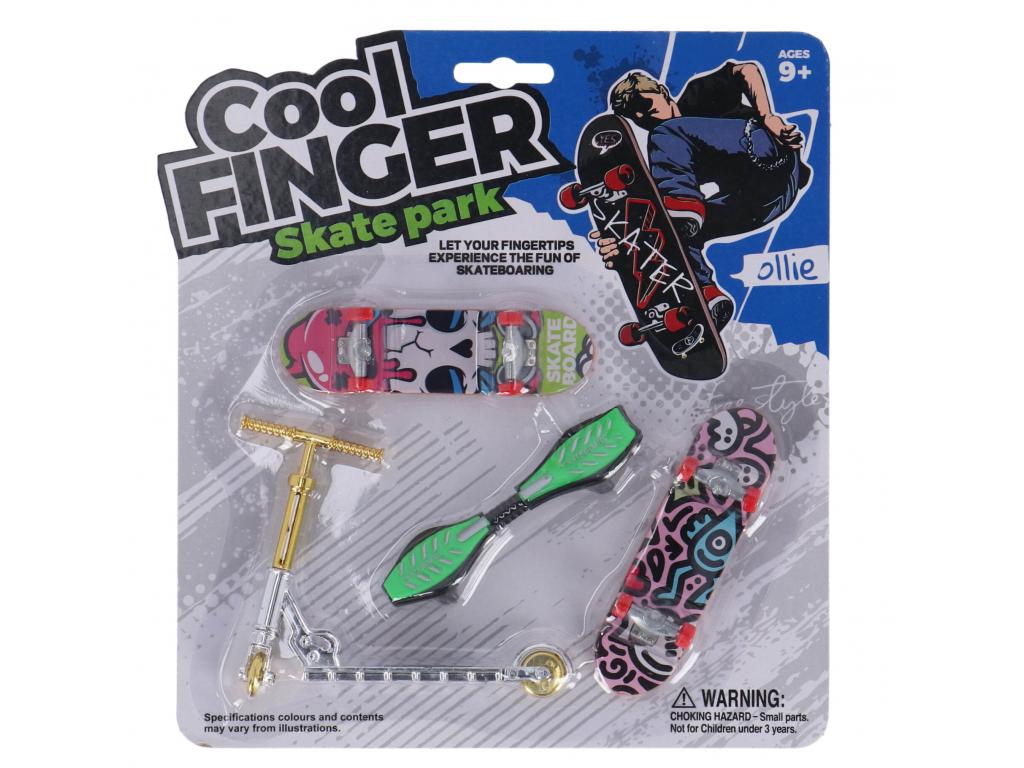 Ujjskateboard rollerrel, vegyes. Csomag 2 ujjskateboarddal, egy ujj waveboarddal és egy ujj stunt rollerrel. Edzd az ujjaidat és mutasd meg a legmenőbb trükköket! Különböző változatok kaphatók, véletlenszerűen. 9 éves kortól alkalmas.