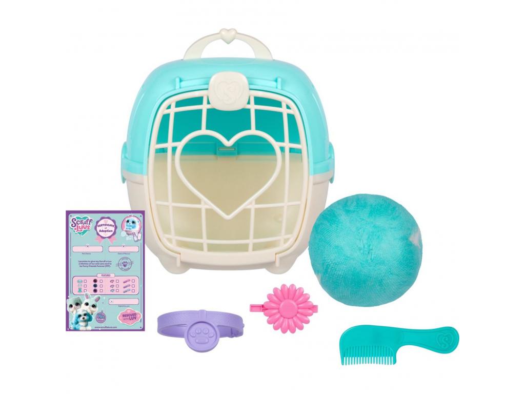 Mi van a dobozban? 1 meglepetés Scruff-a-Luv (kutyus, nyuszi vagy cica) 1 erős hordtáska fogantyúval 1 kefe ápoláshoz 1 hajcsat 1 nyakörv 1 örökbefogadási bizonyítvány