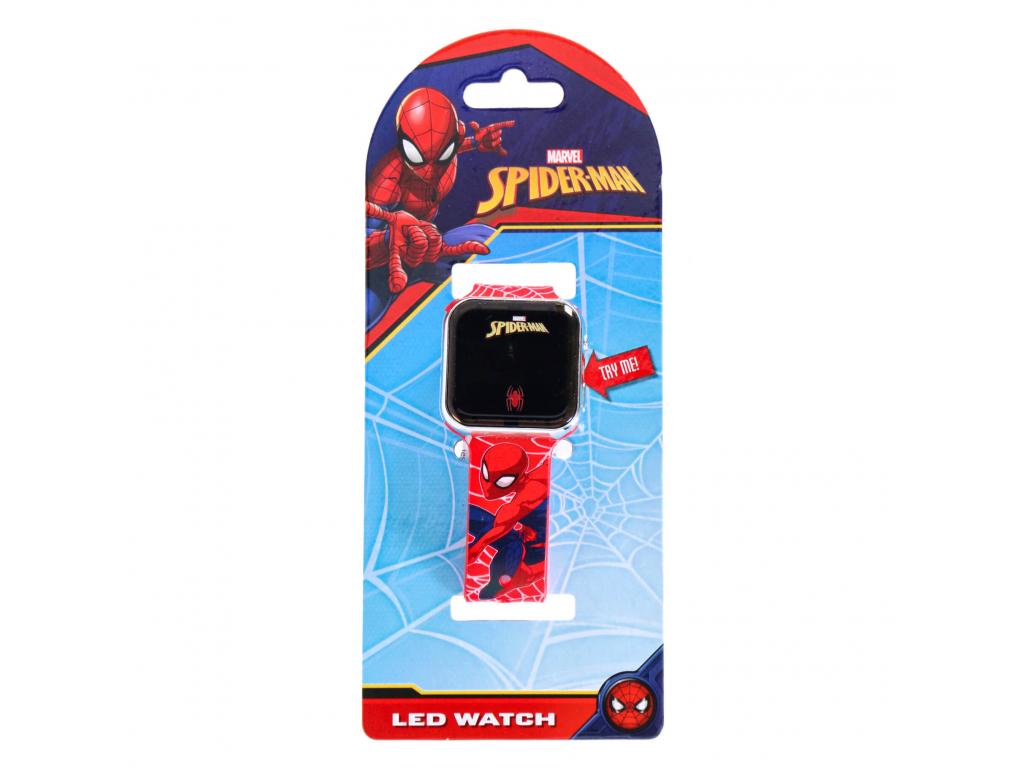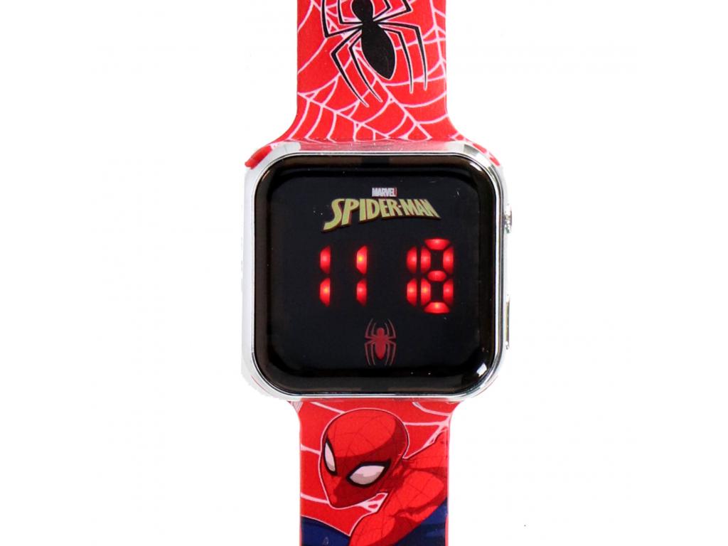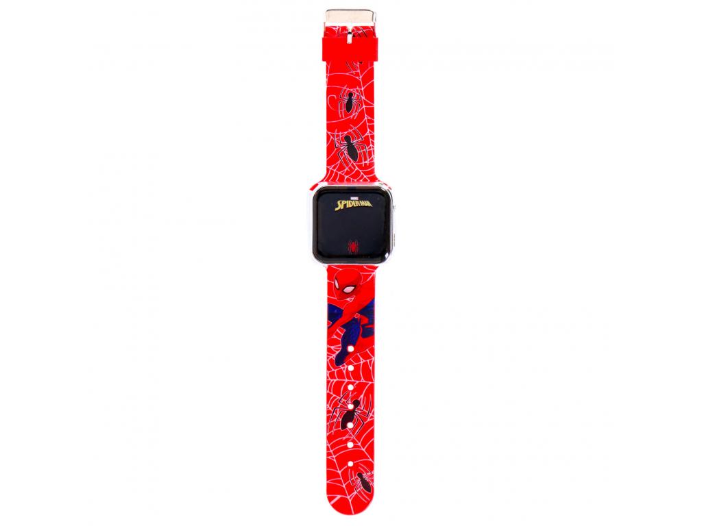 LED óra Spider-man logóval. A szíj piros, Spider-man és logójának képeivel. 3 éves kortól alkalmas.