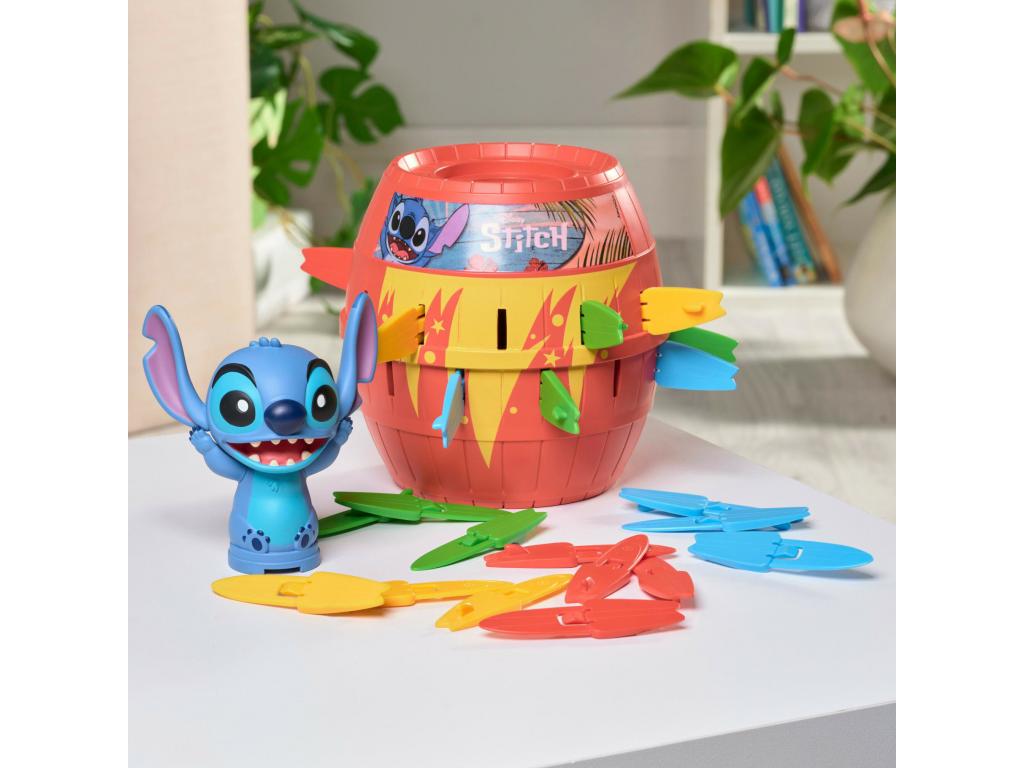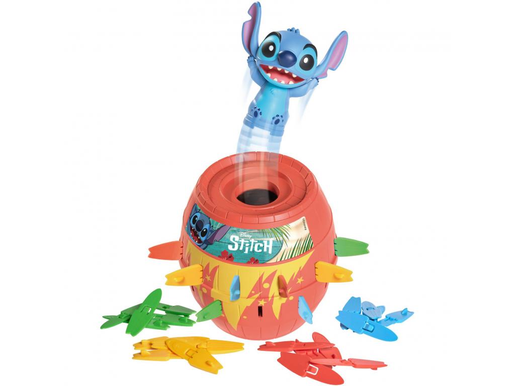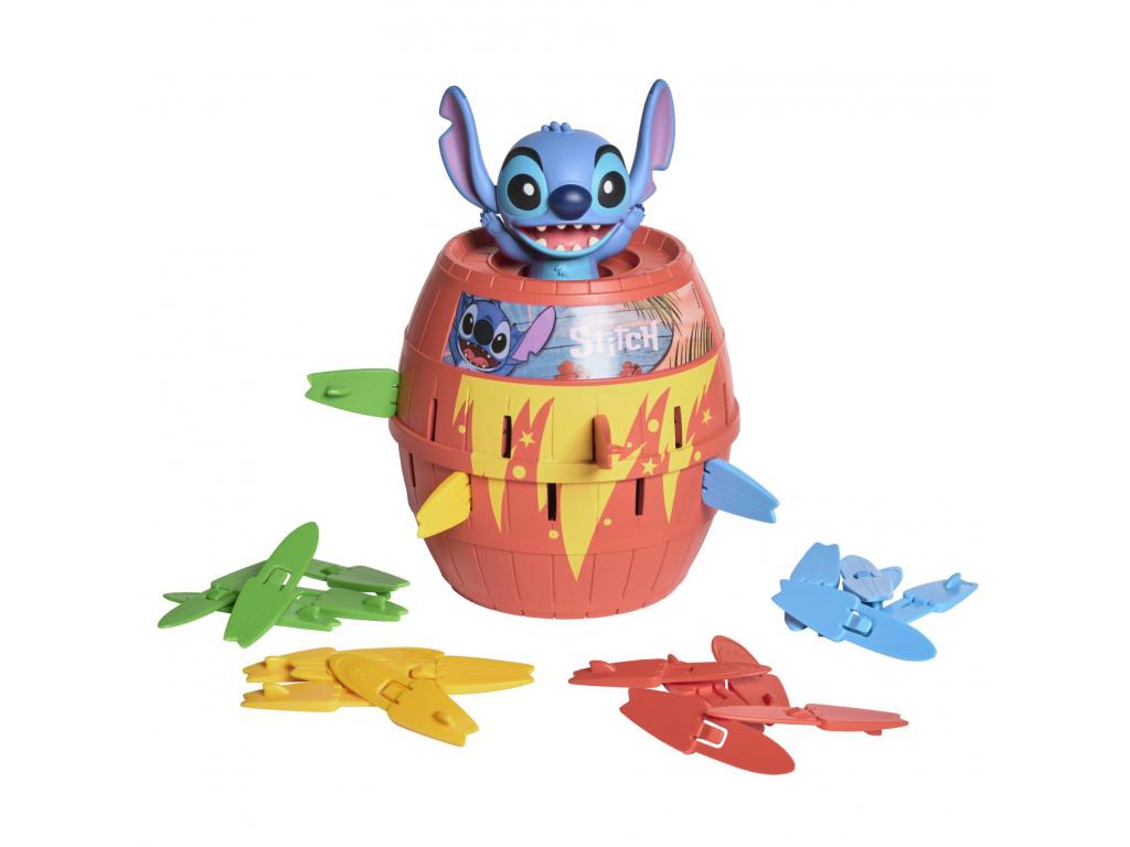 Meglepetés játék a Disney-től ismert Stitch főszereplésével. Klasszikus pop-up játék új köntösben. 4 éves kortól alkalmas. Angol/holland nyelvű. Tedd Stitch-et a hordóba, és felváltva tedd bele a szörfdeszkákat. Melyik szörfdeszka után bukkan fel Stitch? Indíts új játékot úgy, hogy Stitch-et újra lenyomod. Ne feledd, hogy Stitch minden alkalommal egy másik lyukon keresztül bukkan fel. 4 éves kortól.