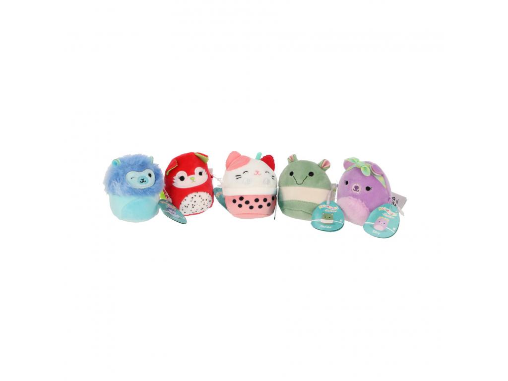 5 darabos gyűjtői csomag a népszerű Squismallows sorozatból. 5 db színes, puha, mini plüss figurát tartalmaz: Silvy, Rozen, Aarin, Roxy, Gerald. Méretük: 6,5 cm.