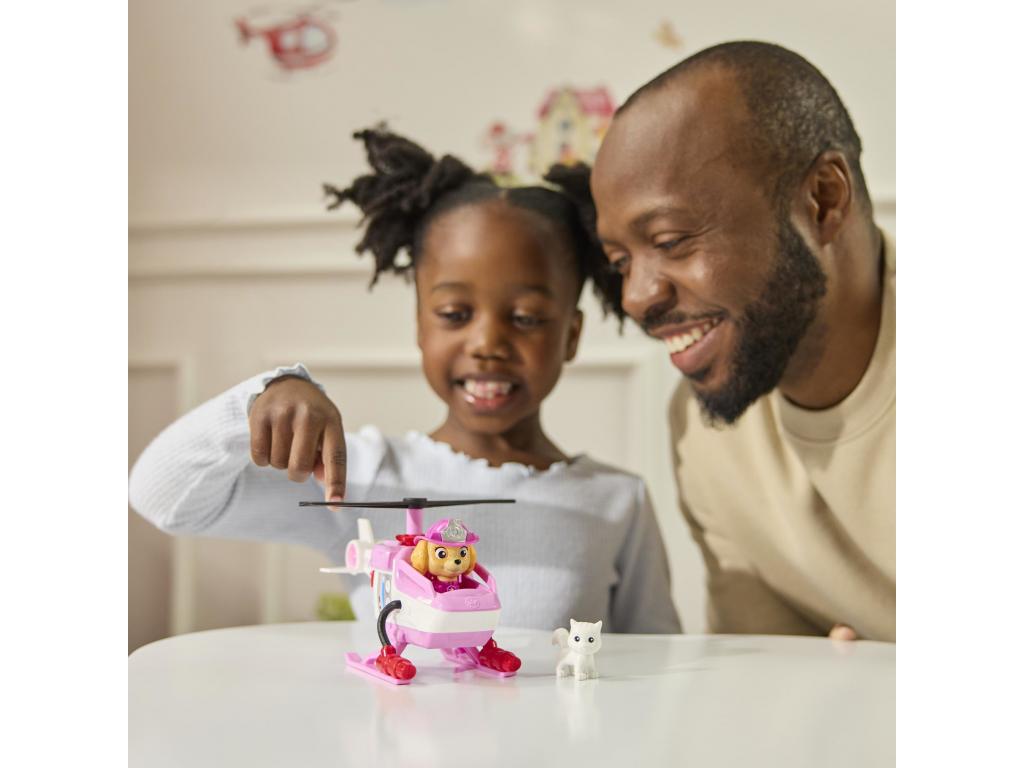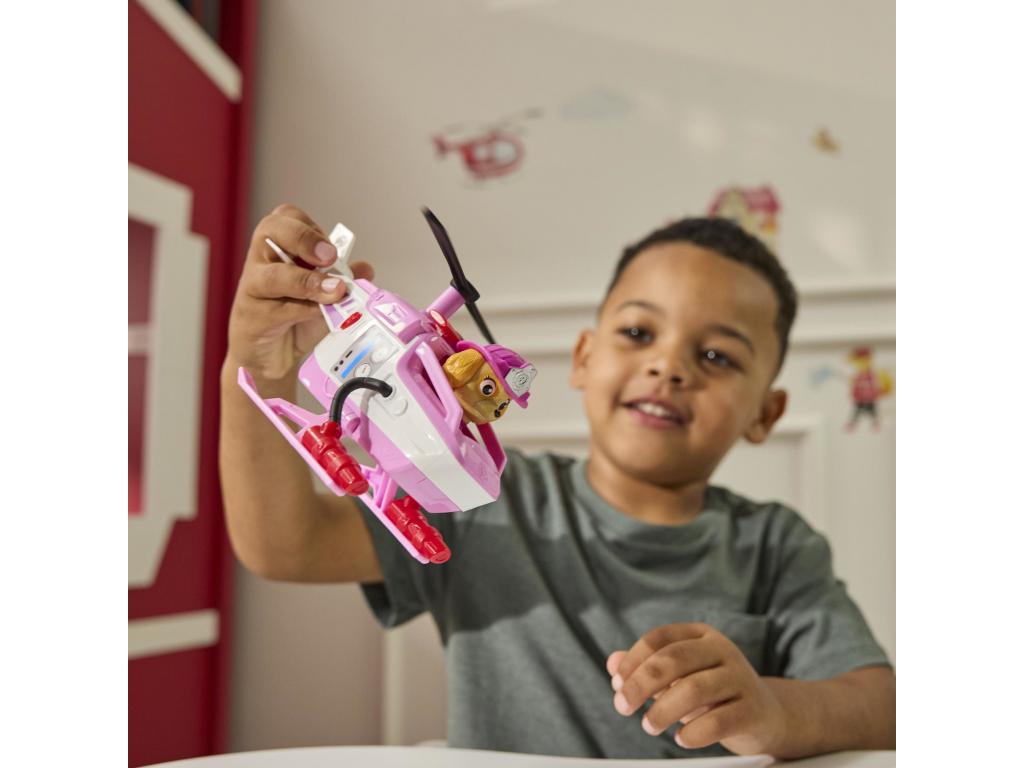 Tűzoltó helikopter Skye figurával a Mancs Őrjáratból. Mozgatható alkatrészekkel és mentőfelszereléssel. Műanyagból készült. 3 éves kortól alkalmas.