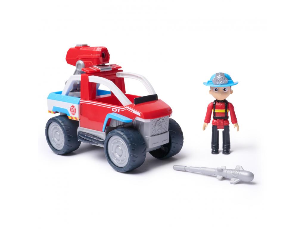 Ryder figurával Fire Rescue stílusban, kb. 9 cm magas. Ryder új tűzoltó egyenruhát és jelvénnyel ellátott sisakot visel. A figura a járműbe rögzíthető, mielőtt a következő mentési akció megkezdődik.