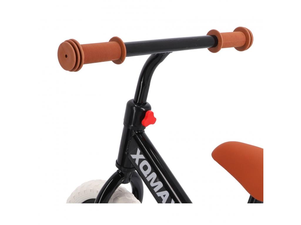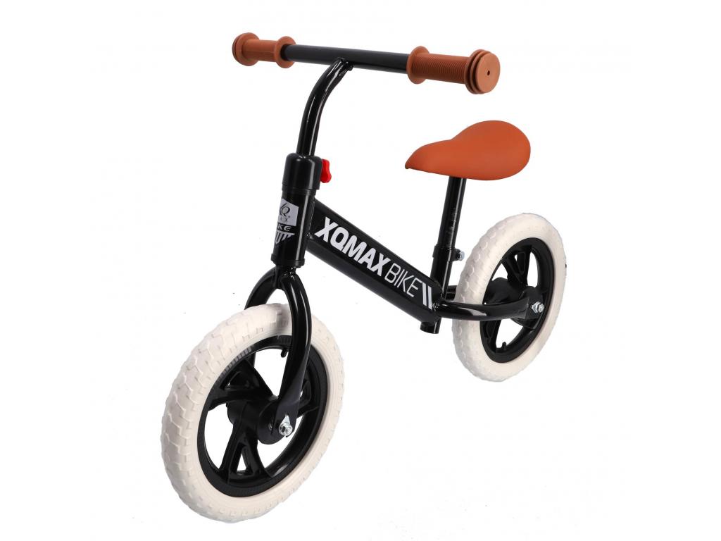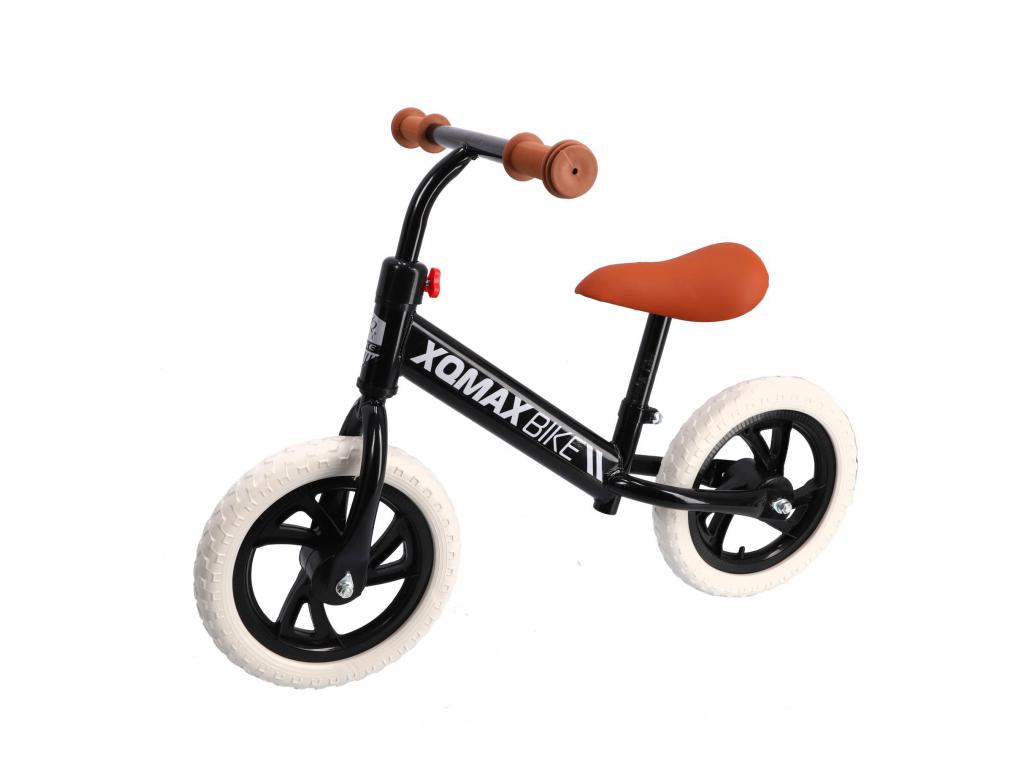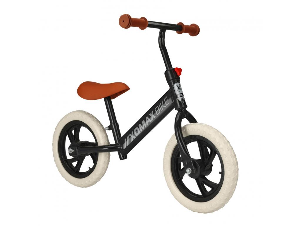 Futóbicikli Fekete 12 hüvelykes, Xqmax. Szép futóbicikli az XQmax-tól, erős gumikkal. Fekete színű, barna díszítéssel. 30,5 cm magas. Állítható kormány és nyereg. A tökéletes első futóbicikli!