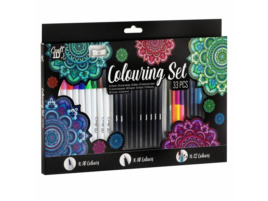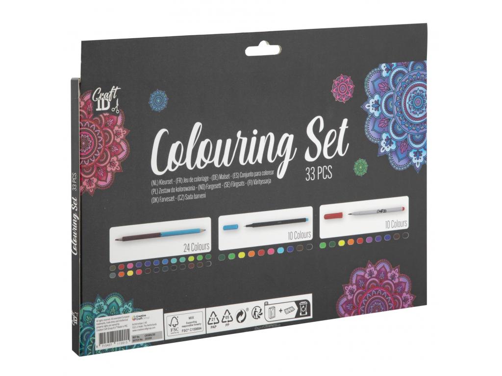33 darabos színező készlet fa tokban, 37,5x24 cm
