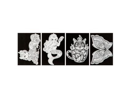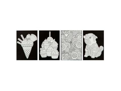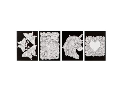 Ez a kézműves készlet négy, bársonyréteggel ellátott rajzot tartalmaz.