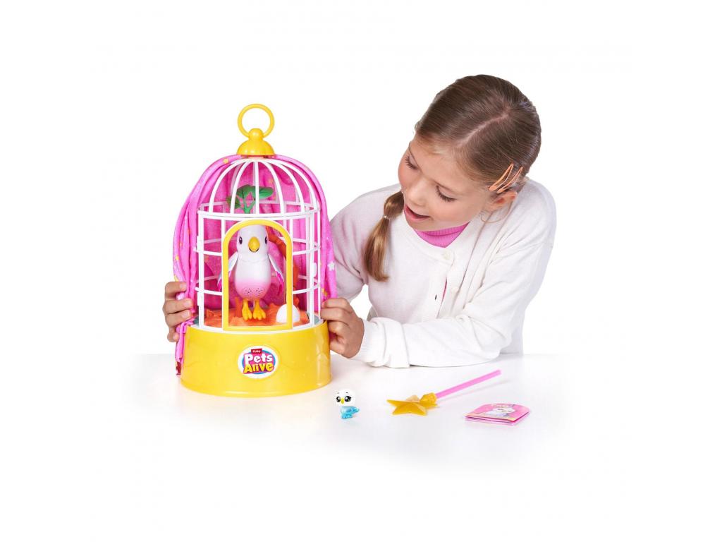 Interaktív madár ketrecben a Pets Alive-tól. Hangot ad és meglepetés kiegészítőket tartalmaz. 3 éves kortól alkalmas.