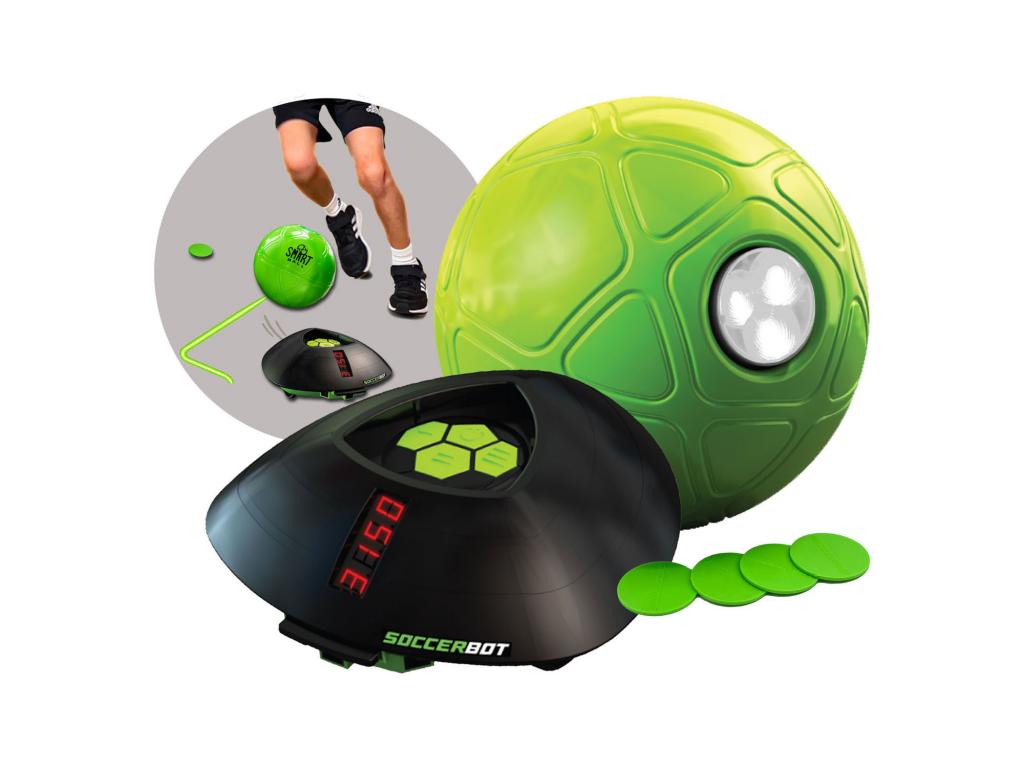 Le tudod győzni a SoccerBotot? A SoccerBot az a végső focijáték, amelyben a mozgékonyság és a sebesség a legfontosabb. Határozd meg a játéktér területét úgy, hogy a 4 zónalapot négyzet alakban helyezed el, egyet minden sarokba. A labdának a játék során ezen a területen belül kell maradnia. Minél kisebb a játéktér, annál nehezebb a játék! A cél az, hogy a labdát mozgásban tartsd, miközben a Soccerbot megpróbálja elkapni. A mozgékonyság a legfontosabb, ezért apró érintésekkel játszd a labdával, és tartsd szemmel, hogy elkerüld a Soccerbotot. Ügyelj rá, hogy a 4 zónalemezzel kijelölt biztonságos játékzónán belül maradj! Mindig tartsd a labdát a földön. Ne próbálja meg a labdát a Soccerbot felett átütni, mert akkor elveszíti az irányítást. A Soccerbot mindig a labda felé mozog, és megpróbálja elkapni azt. Ha a Soccerbot eltalálja a labdát, akkor egy életet veszít. 3 élete van. Ha a Soccerbot háromszor eltalálja a labdát, akkor a játék véget ér, és a Soccerbot befejezi a játékot. Ha a Soccerbot 5 perc után nem sikerül mind a három életet ellopnia, a játék véget ér, és a Soccerbot abbahagyja a labda üldözését. Te nyertél! A Soccerbot ezután megjeleníti a végső eredményedet, majd a jelenlegi legmagasabb pontszámot. Három játék szint van: lassú, közepes és gyors. Fejleszd foci tudásodat és edzd labda kezelési képességeidet! Korhatár: 6 év felett. Akkumulátor információk: Soccerbot: 4 db AA akkumulátor (nem tartozék) Labda: 3 db AAA akkumulátor (nem tartozék).