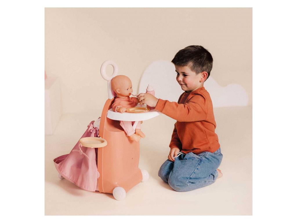Smoby Baby Nurse 3 az 1-ben bőrönd: bőrönd, etetőszék és ágy egyben. 42 cm-es babákhoz alkalmas, 6 kiegészítővel. Műanyagból és szövetből, méretek kb. 25 x 25 x 62 cm. 18 hónapos kortól alkalmas.