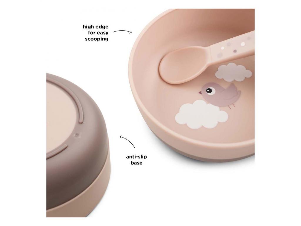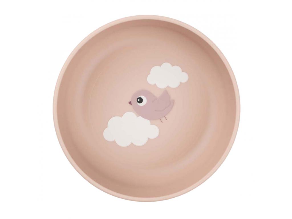 Tökéletes kis étvágyúaknak. A gyerekek imádni fogják, ha étkezés vagy uzsonna közben figyelhetik, ahogy a tál alján megjelenik a nyomtatás, amikor a tál kiürül. A praktikus csúszásgátló aljzat biztosítja, hogy a tálak étkezés közben a helyükön maradjanak. A tál rózsaszínű, és egy aranyos motívummal van nyomtatva, amelyen a vidám Birdee élvezi az életet a felhők között. A selymes matt felület illeszkedik a Foodie kollekció többi darabjához. Az alap sötét púder színe szép kétszínű részletet ad hozzá. Jellemzők Űrtartalom: 375 ml Méretek: O12,5 x 4,5 cm 0 hónapos kortól alkalmas Mikrohullámú sütőben használható Mosogatógépben mosható 70 °C-ig Sütőben nem használható
