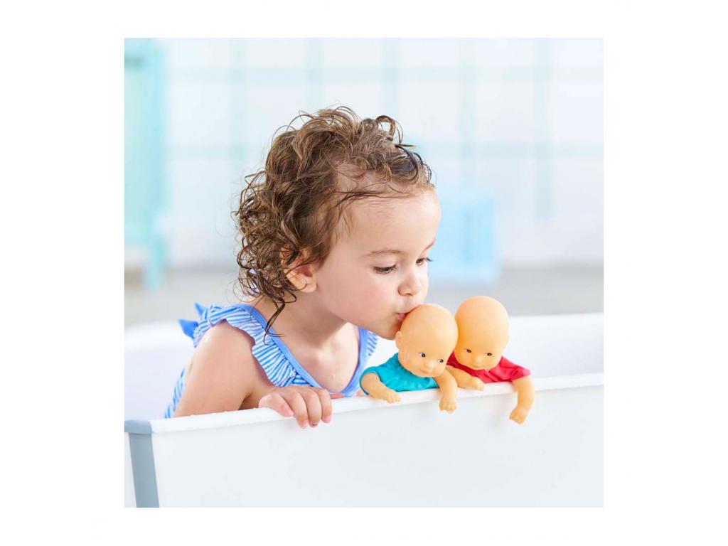 20 cm magas, vízbe vihető minibaba. Könnyű és egyszerűen hordozható, ideális gyermeke napi fürdetéséhez, valamint medencében és a tengerben való úszáshoz. A baba fehér bőrrel és kék szemekkel rendelkezik. Arcát, karjait és lábait puha vinilből készítették, finom vanília illattal.