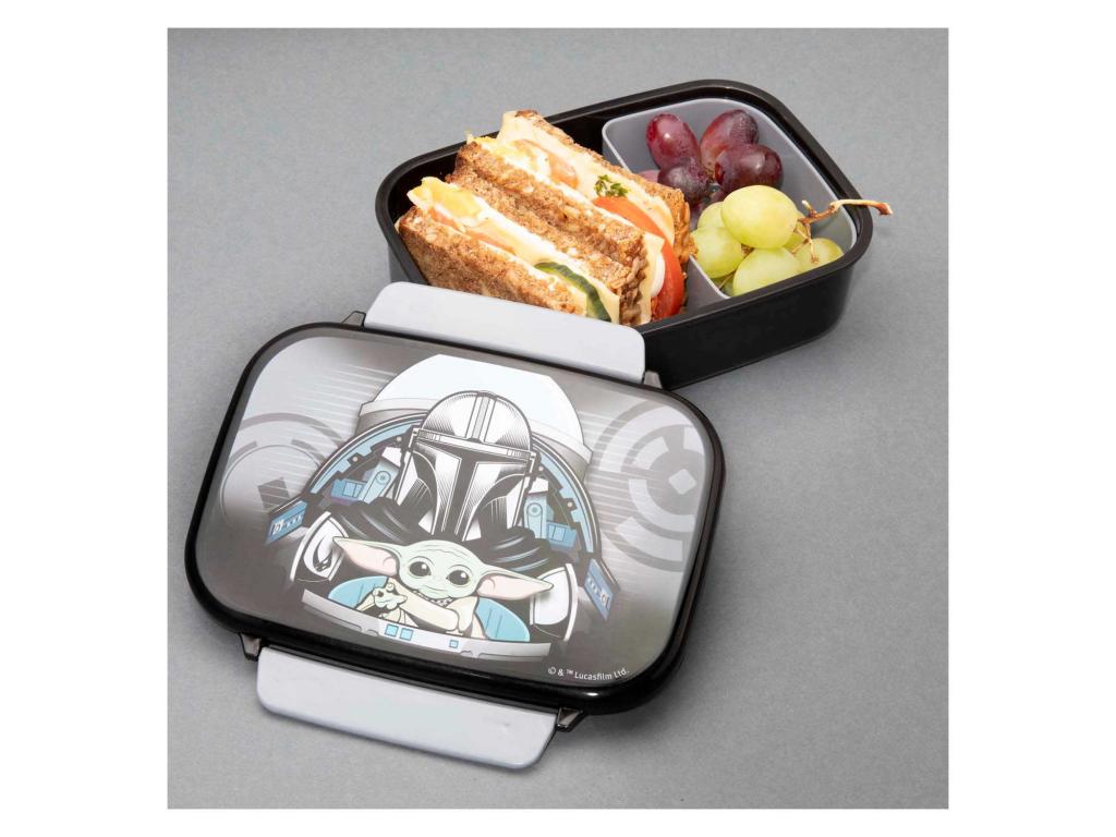 Ez a Grogu (bébi Yoda) uzsonnásdoboz BPA-mentes műanyagból készült, mérete kb. 18 x 13,5 x 6 cm. Gyerekbarát zárral és kivehető belső rekesszel rendelkezik.