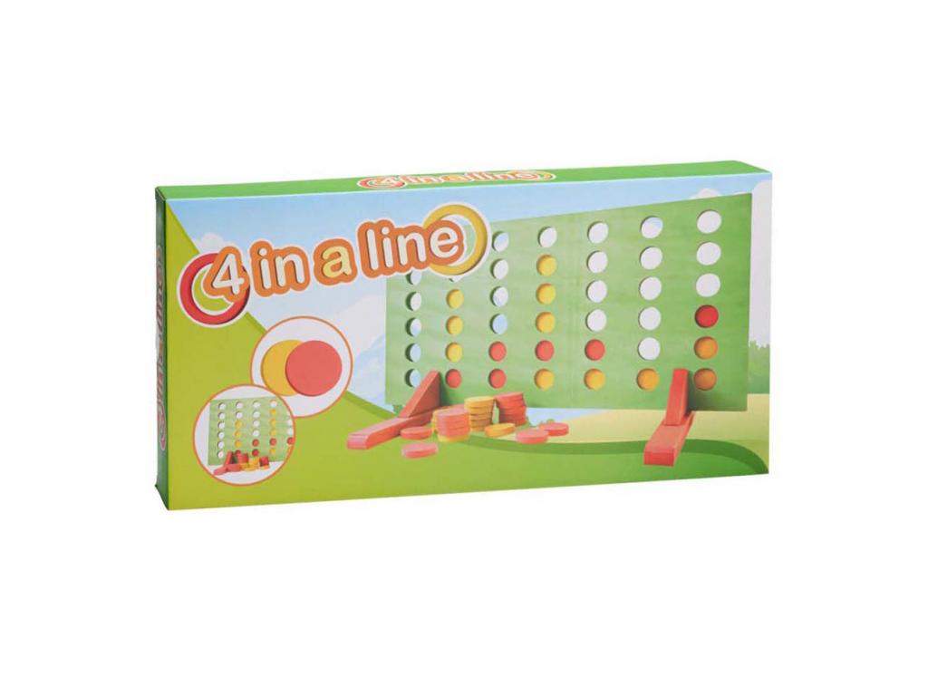 A klasszikus "Négyet egy sorba" játék asztali változata fából, 2 játékos számára. Méretek: 55,5 x 6 x 28 cm.