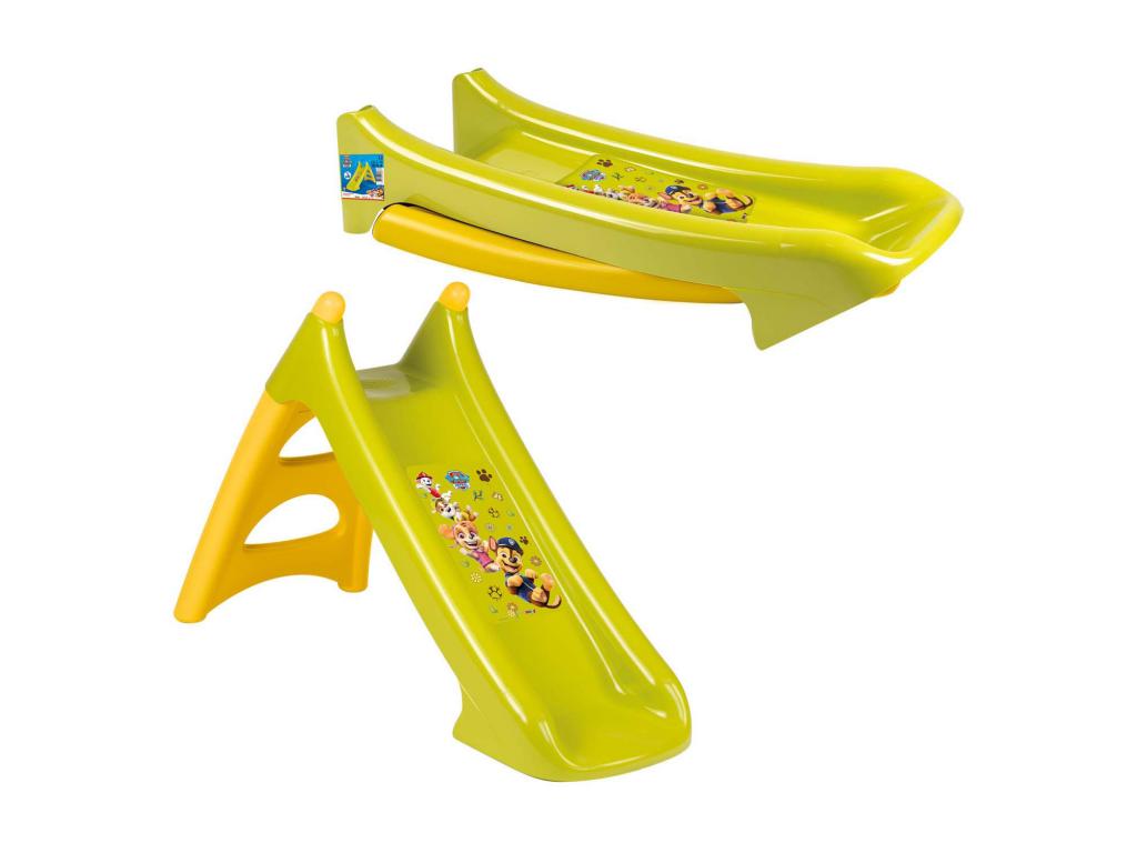 90 cm hosszúságával, 75 cm magasságával és csúszásgátló lépcsőivel különösen 2 éves kortól alkalmas. A dekoráció gyermekeid kedvenc hőseit ábrázolja: Mancs Őrjárat a kertben!