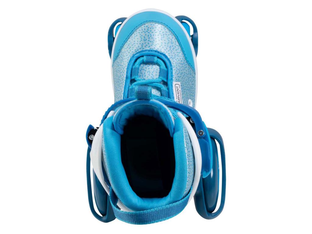 Kék görkorcsolyák. Állítható méretek: 26-29. Alkalmas 20 kg testsúlyú gyermekek számára. Alkalmas 3 évesnél idősebb gyermekek számára.