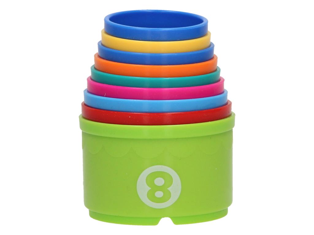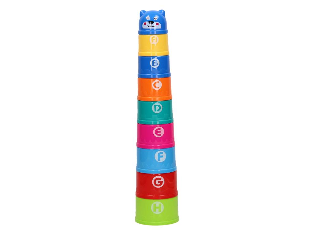 Ezzel a színes toronyépítővel játékosan lehet tornyozni, betűket tanulni és számolni. A szett stabil műanyagból készült, 9 különböző színű kerek blokkból áll.