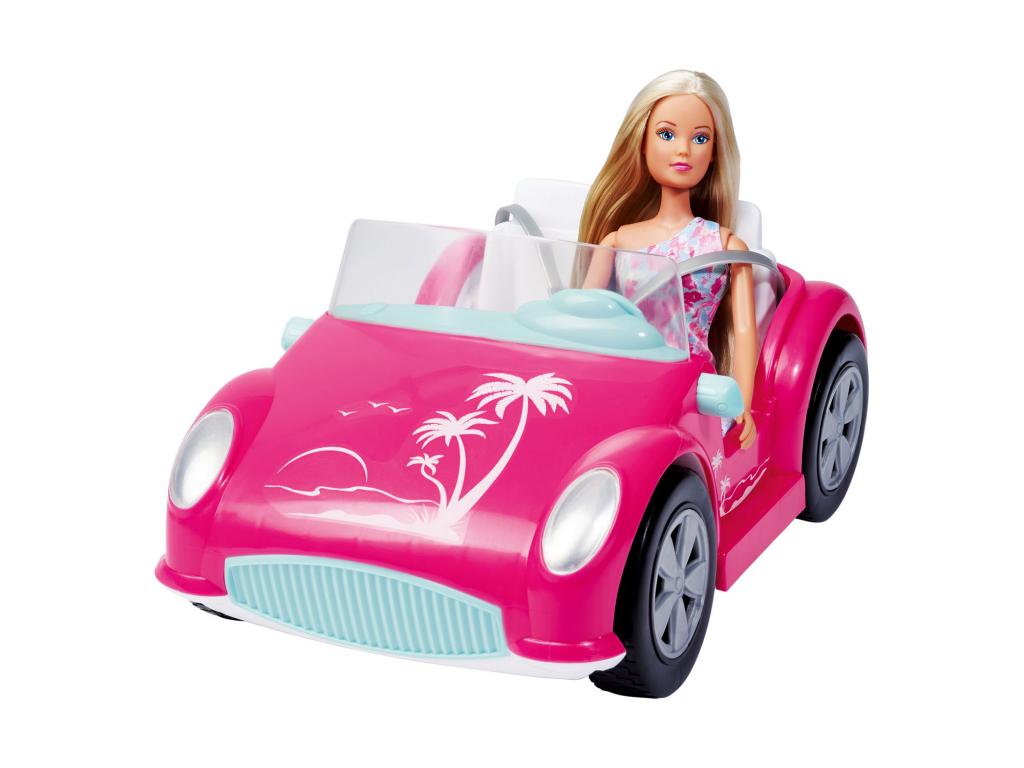 Menő Steffi Love divatbaba rózsaszín tengerparti kabrió sportautóval. 3 éves kortól alkalmas