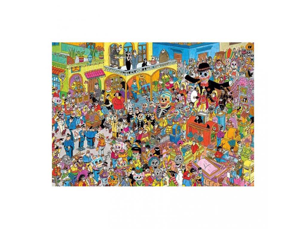 A Jan van Haasteren család a Mindenszentek napját ünnepli. Ez egy mexikói hagyomány, amelynek során a családok üdvözlik rokonaik lelkét. Ez egy étellel, itallal és zenével teli nap. Megtalálja a családtagokat ebben a színes dekorációban? Jan van Haasteren puzzle-jei sok színnel és részletességgel rendelkeznek. Jan van Haasteren évtizedek óta rajzol humoros képeket, amelyek mindig meglepetést okoznak és nevetésre késztetik az embert. Az igazi rajongók ismerik Jan van Haasteren különleges jellemzőit, és minden puzzle-ben azonnal megkeresik a cápauszonyt, Mikulást, a kezeket, a fogsorokat és Jan önarcképét. A Jumbo több tucat Jan van Haasteren puzzle-t tart a gyűjteményében, 54-től 5000 darabig.