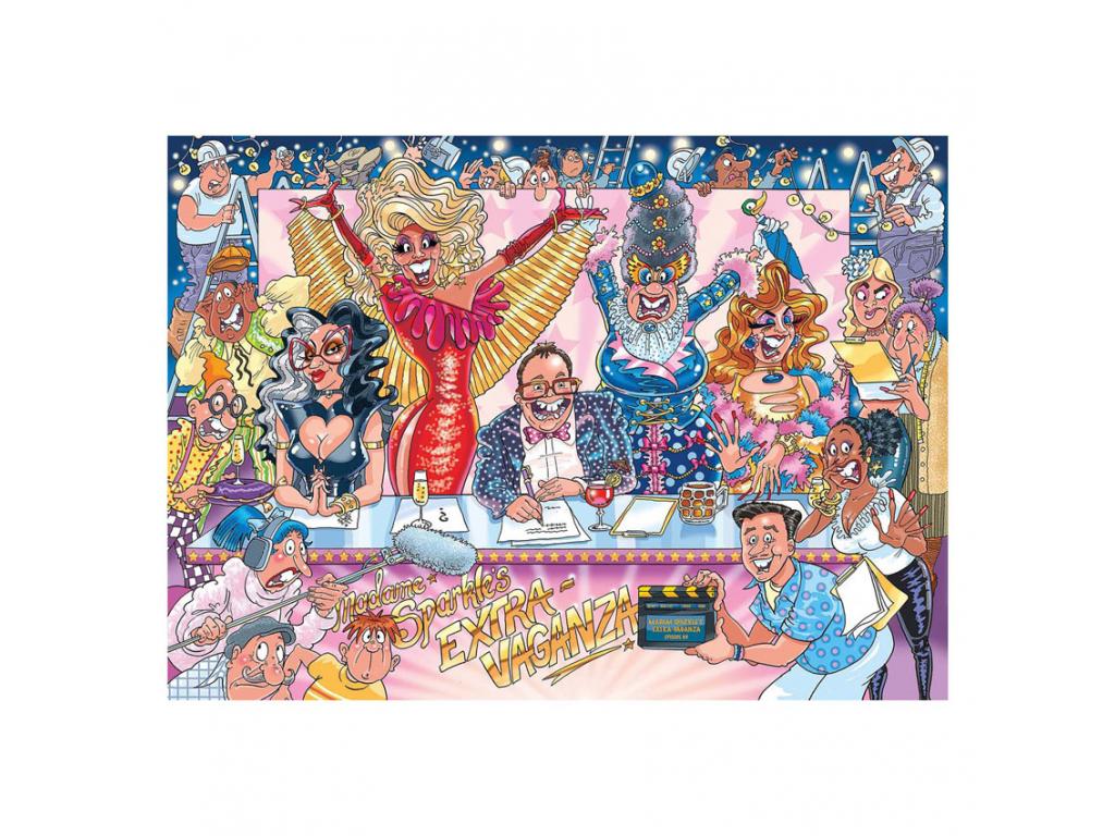 Mutassa meg magát a legjobb oldaláról, itt az ideje, hogy mindent beleadjon a világ legnagyobb drag versenyén! A kamerák forognak, és a szupermenő zsűritagok csúcsformában vannak, de vajon tényleg felkészültek-e az extravagáns drag queenek által számukra készített show-ra? Mi hagyta szóhoz sem jutni a zsűritagokat és az egész kameracsapatot? A zsűritagok alig hisznek a szemüknek, de vajon elvakította őket a csillogás, vagy ez a szenzációs show a valaha volt leglátványosabb? Ez az a kép, amit kirakós játékban kell összeraknia. Jellemzők: - 1000 darabos puzzle felnőtteknek - Ne a dobozon lévő képet rakd ki, hanem használd a fantáziádat, hogy összerakd a Wasgij megoldást! - Méret összeállítás után: 68 x 49 cm A Wasgijről Ezek a Jumbo Wasgij puzzle-k kifejezetten felnőtteknek lettek kifejlesztve. Más puzzle-ktől eltérően a Wasgij-nál nem egyszerűen a dobozon látható képet állítod össze, hanem a fantáziádat használod a puzzle összeállításához! Három különböző koncepció létezik: Original, Mystery és Destiny. A Wasgij Original segítségével a nyomok és a képzeleted alapján kitalálhatod, hogy mit néz az egyik figura a dobozon látható jelenetben.