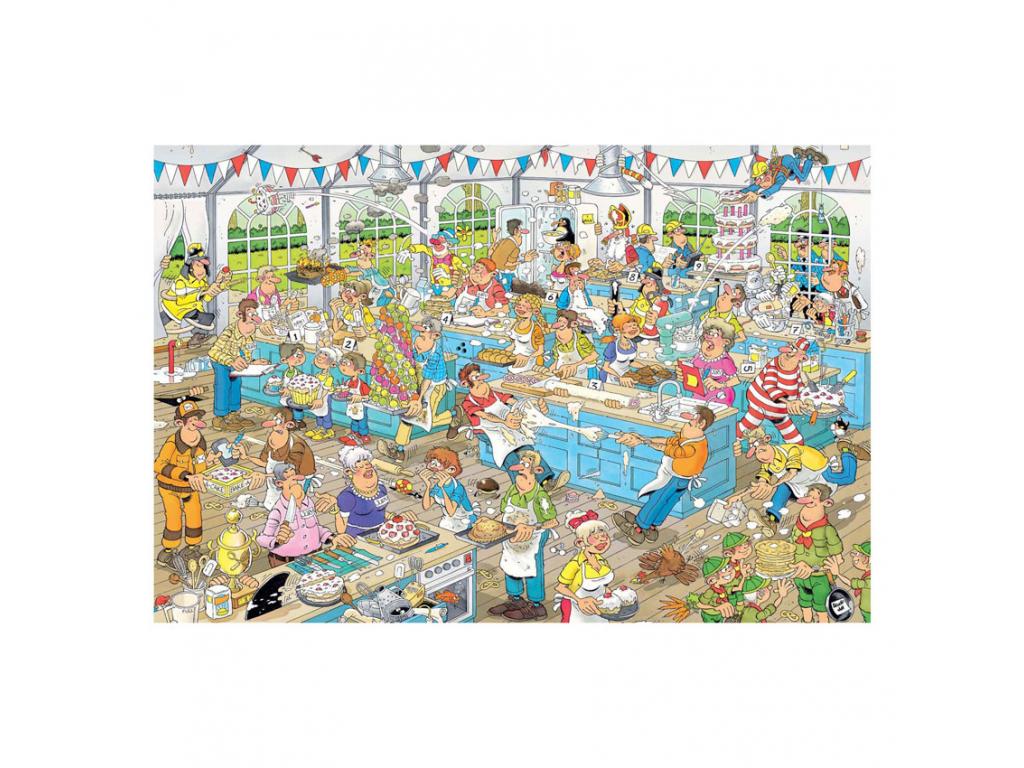 Üdvözöljük a pékek párbaján! Csak a legjobbak vehetnek részt a versenyen. De tortát sütni a versenyre nem könnyű feladat. Nem mindenki jár sikerrel... Ki viszi haza a győztes kupát? A Jan van Haasteren puzzle több mint egy egyszerű puzzle: egy kalandsorozat, amelyben ismerős szereplők végtelen környezetben, abszurd részletekkel teli világban kalandoznak. Fedezze fel a Jan van Haasteren család összes őrült kalandját! Büszkék vagyunk arra, hogy puzzle-jeinket Európában újrahasznosított kartonból gyártjuk. A karton puzzle-darabokra vágásához a legvékonyabb pengét használjuk. A puzzle elkészülte után szinte varratmentesnek tűnik. Jó szórakozást kívánunk a Jan van Haasteren puzzle-jével!