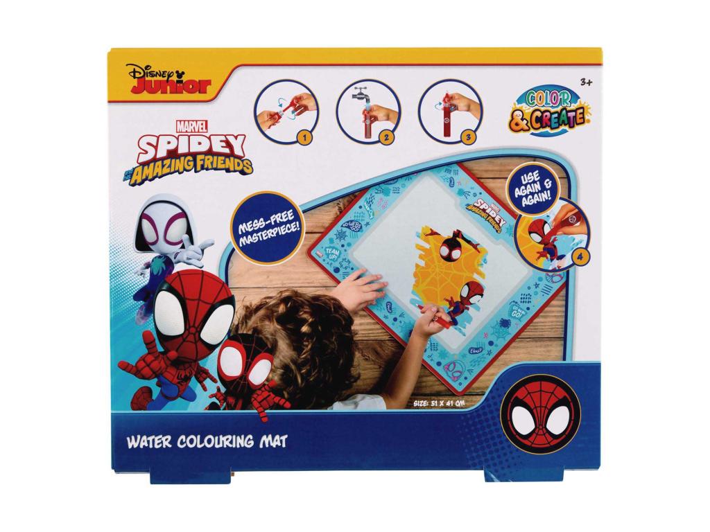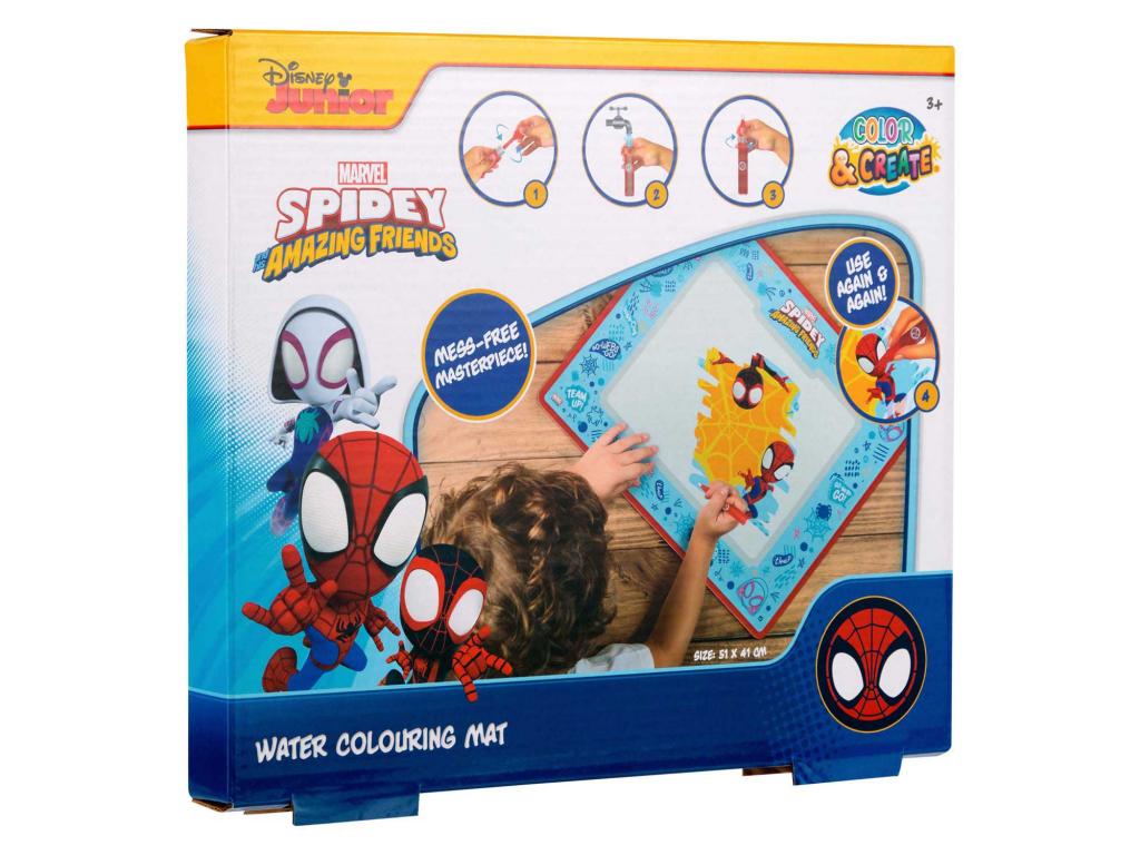 Spidey akvarell játék szőnyeg, 51 x 41 cm, műanyagból. Újratölthető, vízzel tölthető színező tollal. Könnyen száradó tulajdonságainak köszönhetően újrafelhasználható.