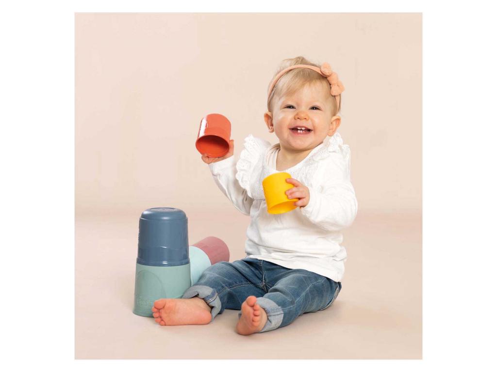 Smoby piramis 6 színes pohárral, amelyeket egymásra lehet rakni és fürdőkádban lehet velük játszani. Fejleszti a motorikus képességeket és a formák felismerését. 12 hónapos kortól alkalmas.