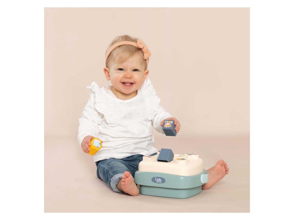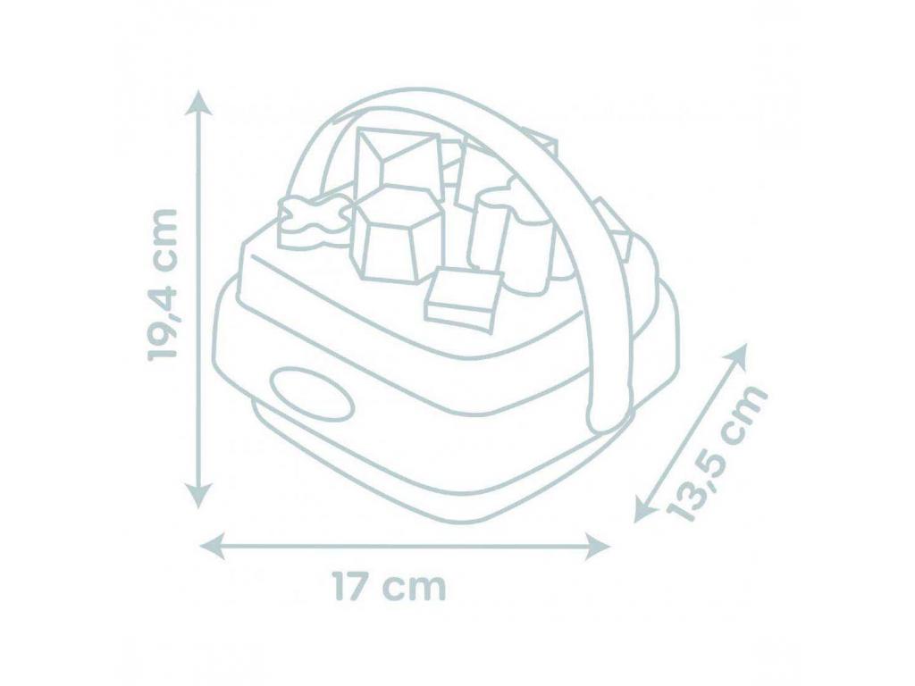 Vidám és tartós formaválogató növényi műanyagból, 8 színes blokkkal és praktikus fogantyúval. Méretek: 18 x 17 x 10 cm. 12 hónaposnál idősebb gyermekek számára alkalmas.