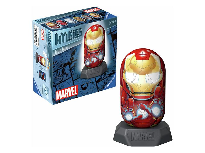 A Marvel Iron Man: Imádni fogod! A Hylkies néhány híres filmhőst ábrázol: egyedülálló illusztrációk egy speciális 3D kapszula formájában. Fedezd fel újra kedvenceidet darabról darabra: 54 nyomtatott műanyag puzzle darabbal, amelyek hátulján számozva vannak, megalkothatod egyik kedvenc hősödet. Miután összeállította, helyezze az alapra, és tegye ki valahova, hogy mindenki megcsodálhassa.