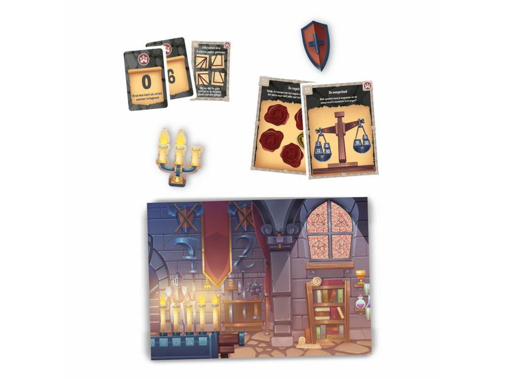 Egy kastély, amely nyomokat és rejtélyes feladványokat rejt, amelyeket csak egy okos nyomozó tud megoldani. Izgalmas kaland kicsiknek és nagyoknak egyaránt! Kártyákkal és feladatokkal játszható játék, amelyeket meg kell oldani, hogy kijussunk a kastélyból, pontosan úgy, mint egy igazi szabadulószobában! Egyedülálló kaland, amelyben a feladatok logikai gondolkodást, matematikai érzéket, megfigyelőképességet és nyelvi készségeket fejlesztenek. Minden kártya egy-egy nyomot rejt, amely segít megszökni a kastélyból. A játék tartalmaz egy kártyacsomagot rejtvényekkel, egy játéktáblát és hasznos tárgyakat a nyomok megtalálásához. A játék egy felnőttek és gyerekek körében népszerű trendre, az escape roomra reagál, hogy együtt lehessen játszani és játékos módon ösztönözze a találékonyságot. Holland nyelvű játék.