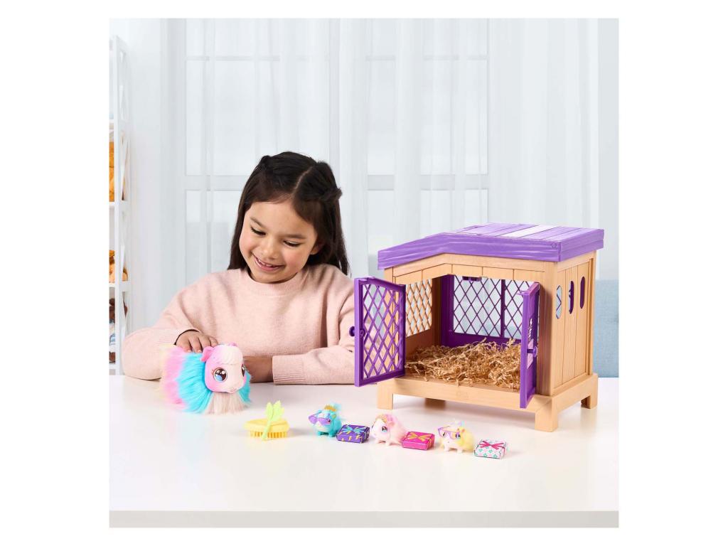 Little Live Pets Mama Surprise, az interaktív, szivárvány színekben pompázó plüss tengerimalac, amely varázslatos módon három babát szül! Ez a puha, interaktív tengerimalac-mama interaktív ketrecben él, szalmával, és több mint 20 hangot és reakciót ad ki. Mama puha, hosszú szőrű, és szeretne veled játszani. Gondoskodj jól Mamáról, etesd meg zellerrel, simogasd meg, és fésüld meg hosszú, gyönyörű szőrét. Mindenféle hangot kiad, hogy megmutassa, milyen boldog.