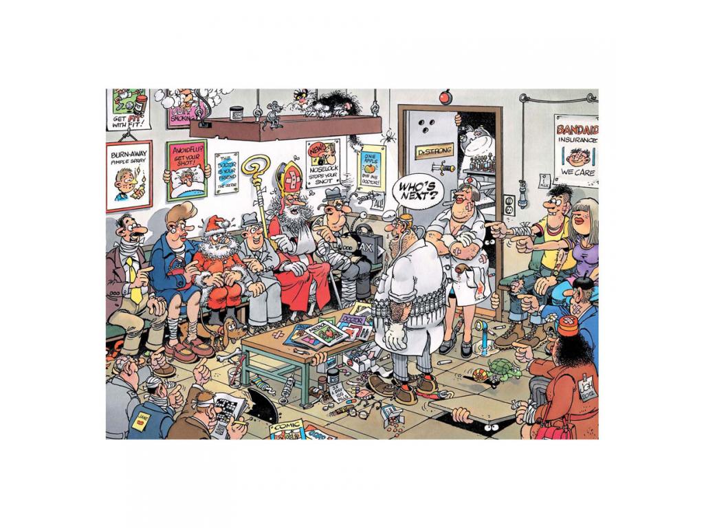 A rendelő várótermében nagy a nyüzsgés. De a Jan van Haasteren család tagjai közül senki sem tűnik sietőnek, hogy sorra kerüljön. Úgy tűnik, hogy először a Mikulás jön sorra. A Jan van Haasteren puzzle több, mint egy átlagos puzzle: egy kalandsorozat ismerős szereplőkkel, végtelen háttérrel, tele abszurd részletekkel. Fedezze fel a Jan van Haasteren család összes őrült kalandját! Büszkék vagyunk arra, hogy puzzle-jeink újrahasznosított kartonból készülnek Európában. A karton puzzle-darabokra vágásához a legvékonyabb pengét használjuk. A puzzle elkészülte után szinte varratmentesnek tűnik. Jó szórakozást kívánunk a Jan van Haasteren puzzle-hez!