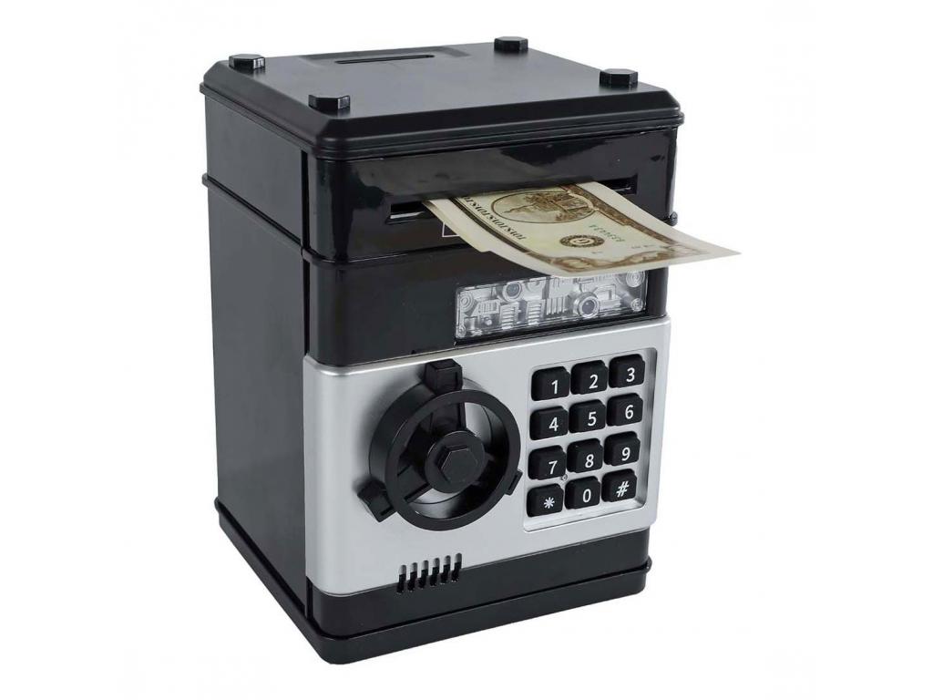 Persely széf titkos kóddal, fekete, 19,5 cm