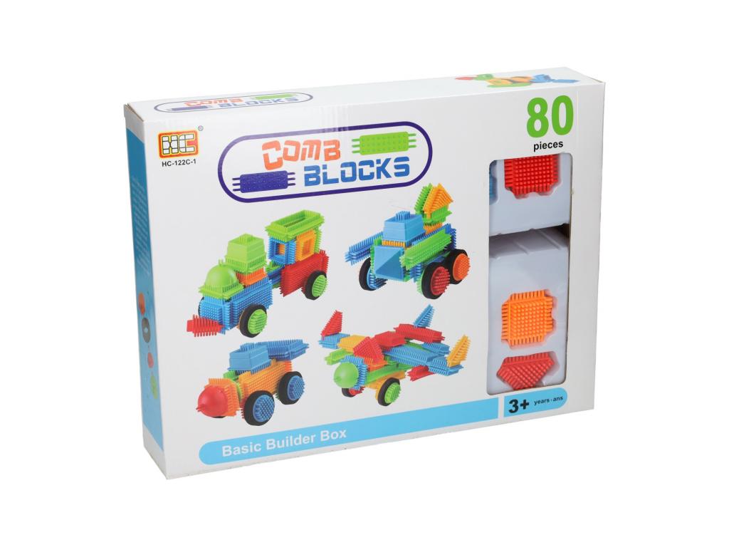 Alap építőszett sörtés építőelemekből, 80 darab. A kis tüskék segítségével könynen és sokféle módon kapcsolhatod össze az egyes elemeket, fantáziád szerint. 3 éves kortól alkalmas.