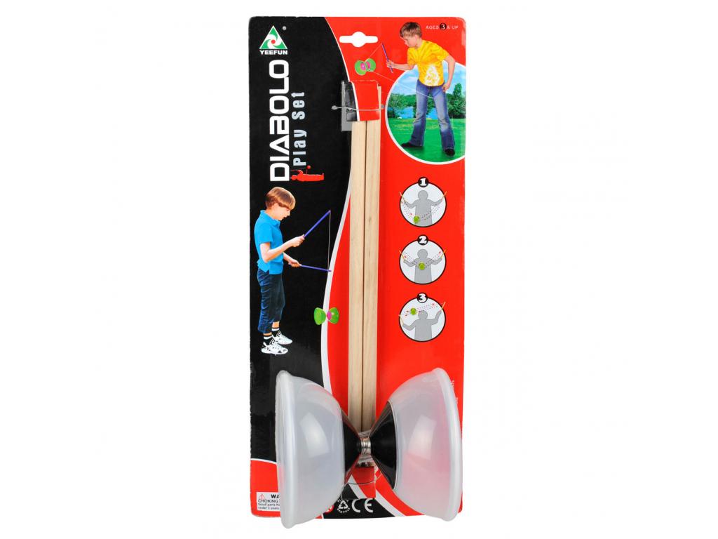 Gurítsd, repítsd ezt a diabolo szettet, vagy akár kettővel is játszhatsz egyszerre! Robusztus műanyagból készült, fém maggal és fa rudakkal.