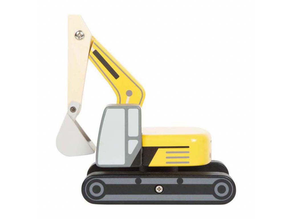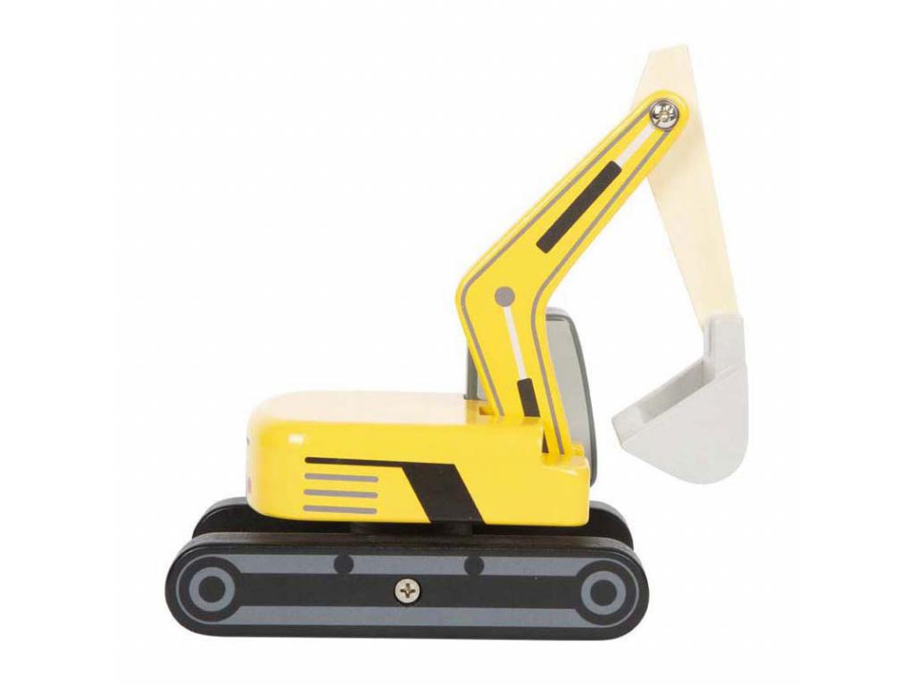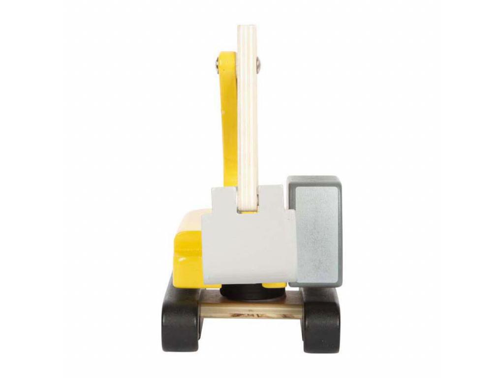 Ez a fa lapáttal ellátott kotrógép a tökéletes jármű a kis építőmunkások számára. A robusztus kotrógép 360 fokban elforgatható, így biztonságosan mozgatható és szállítható vele a rakomány. A kotrógép karja két ponton mozgatható, végén pedig egy könnyen kézzel működtethető mozgatható lapáttal rendelkezik. A jármű kerekei ügyesen el vannak rejtve egy műanyag lánc alatt, ami a kotrógépnek valósághű megjelenést kölcsönöz. Ez az építőipari jármű stabilitásával, robusztus felépítésével és optimális játékélményével győzi meg a gyerekeket, így elengedhetetlen kelléke minden gyerekszobai építkezésnek. A fa kotrógép manőverezése javítja a gyermekek kéz-szem koordinációját, miközben szabadjára engedik fantáziájukat és különféle építési forgatókönyveket találnak ki. Ez a játékjármű emellett elősegíti a társasági életet is, mivel a gyermekek közösen tervezik és valósítják meg saját építési projektjeiket. Elengedhetetlen minden fiatal autó- és teherautórajongó számára, aki szereti a kreatív szerepjátékokat. Jellemzők - 24 hónapos kortól alkalmas - Méretek: kb. 23 x 10 x 13 cm - A kinyújtott lapát magassága: kb. 23 cm