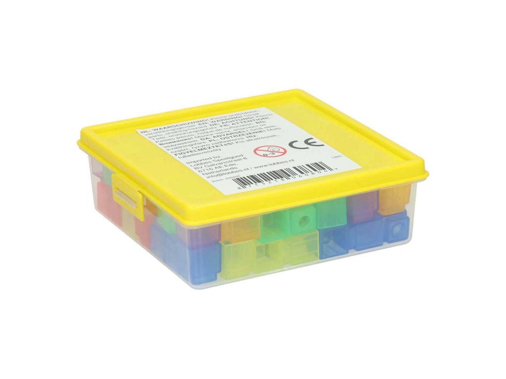 Átlátszó, színes számolókockákból álló készlet. Számoláshoz, építéshez, válogatáshoz és tanórai használatra is alkalmasak. 3 év alatti gyermekek számára nem alkalmas.