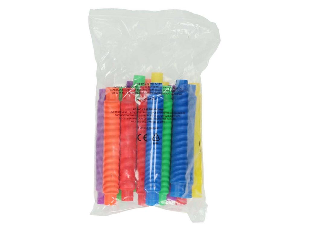 Ez a 18 hosszú, nyújtható csőből álló készlet különböző színű, rugalmas csöveket tartalmaz. A csövek nyújthatók, forgathatók és összekapcsolhatók, elősegítik a motorikus és érzékszervi játékot.