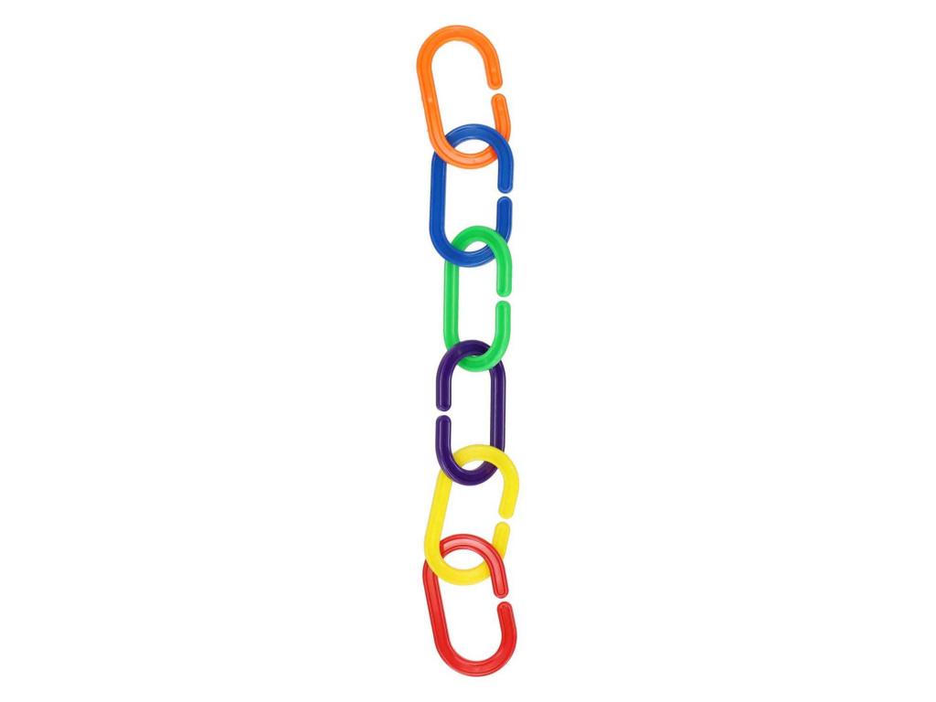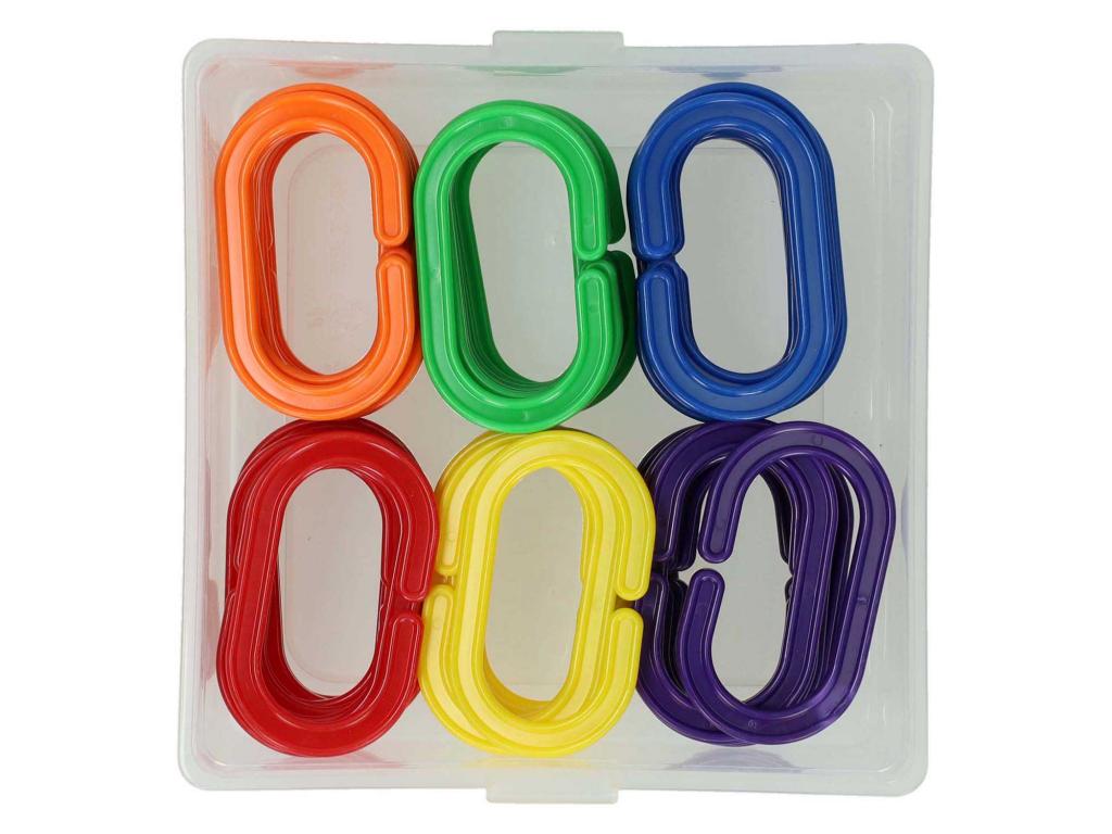 60 darab nagy műanyag láncszem hat különböző színben. A láncszemek könnyen összekapcsolhatók és tökéletesen alkalmasak a játékos tanuláshoz. Szállítás stabil tárolódobozban.