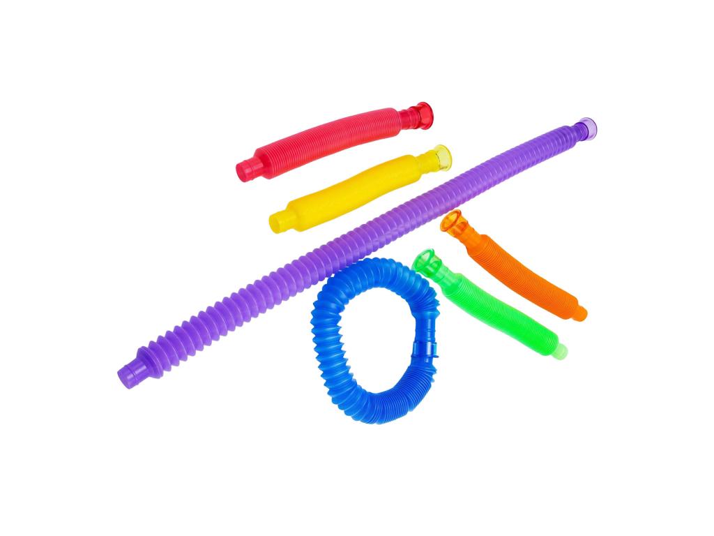 Ez a 6 db hosszú, nyújtható csőből álló készlet különböző színű, rugalmas csöveket tartalmaz. A csövek nyújthatók, forgathatók és összekapcsolhatók, elősegítik a motorikus és érzékszervi játékot.