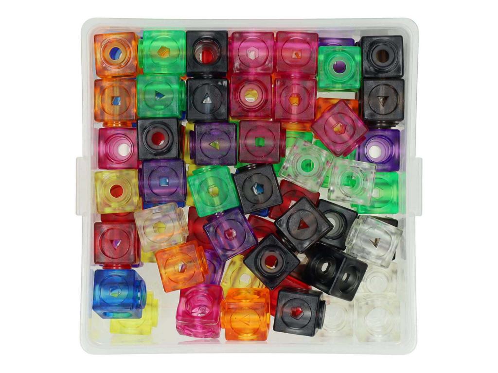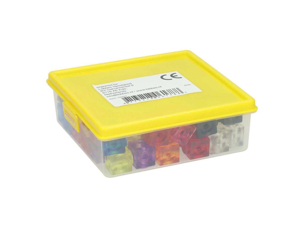 Az Átlátszó összekötő kocka építőelemek 75 db tárolódobozban leírása: