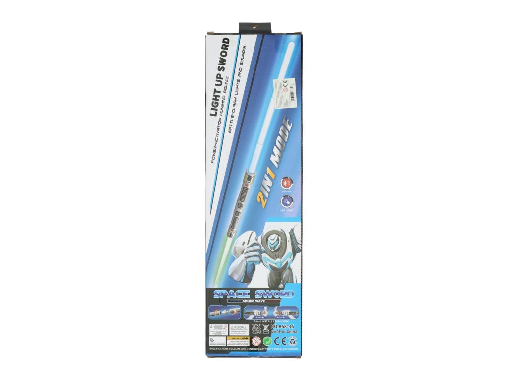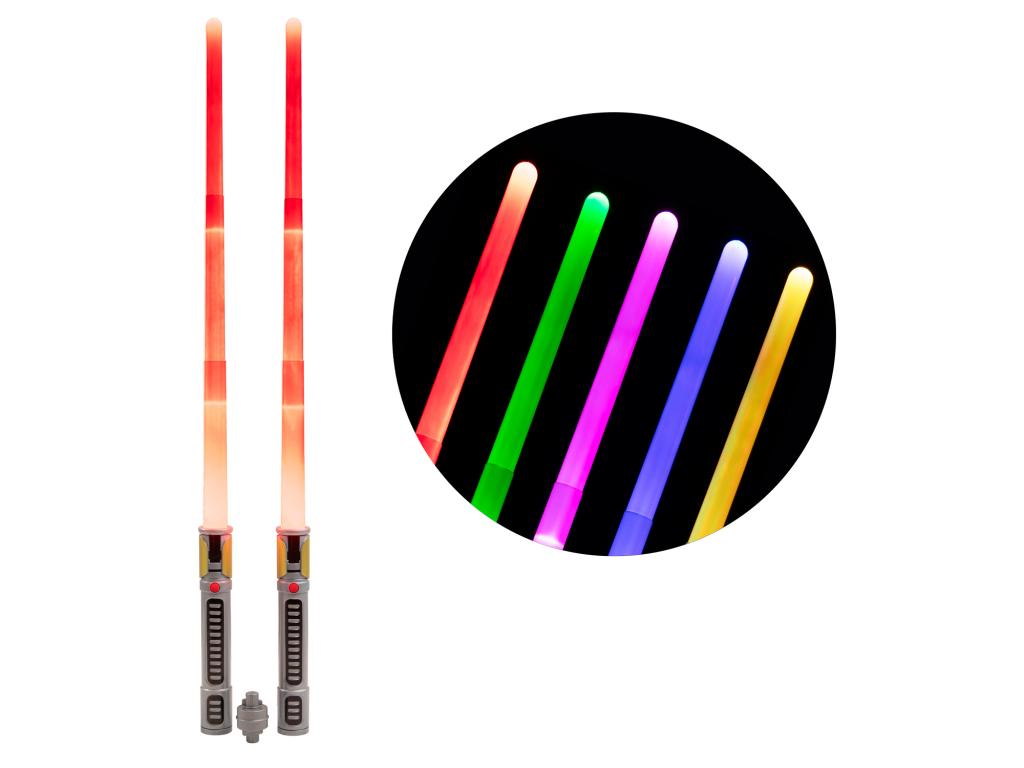 Fénykard LED-es fénnyel és hanggal. Két különálló kardként vagy kettős kardként is használható. Interaktív hanghatásokkal. Elemről működik. 3 éves kortól alkalmas.