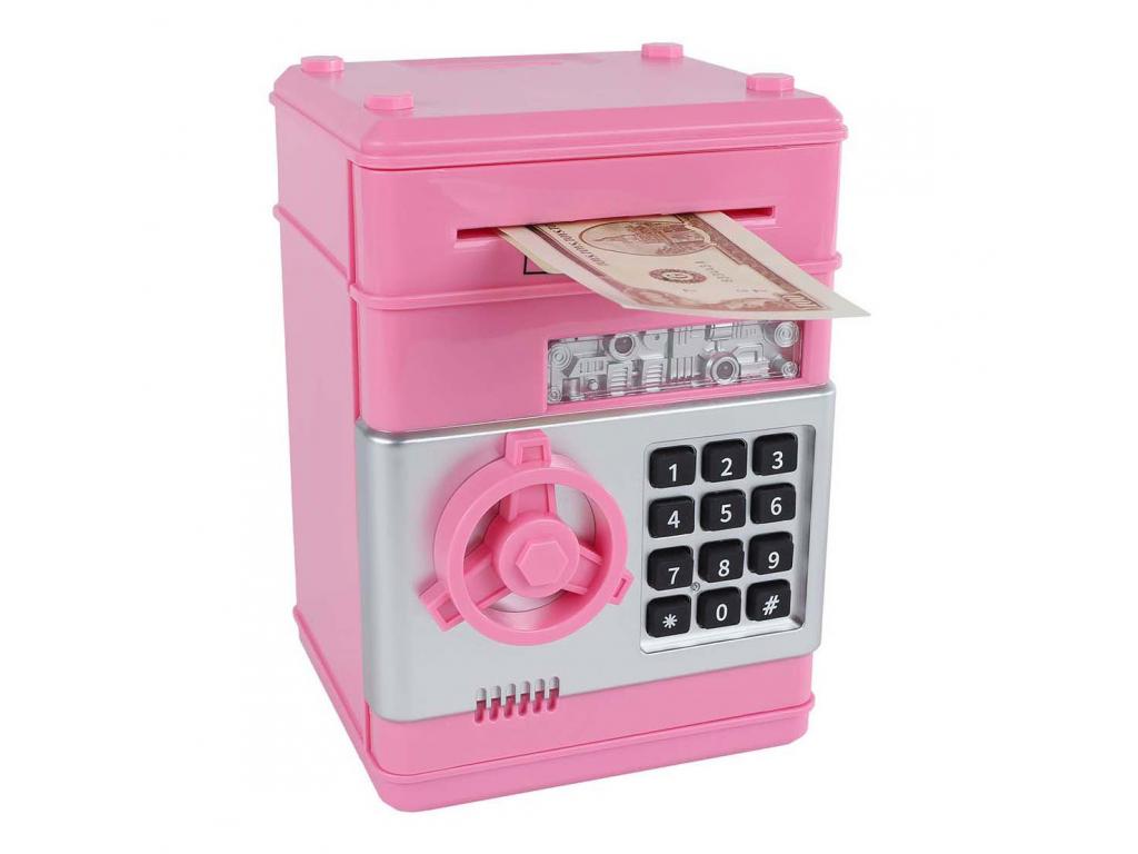 Persely széf titkos kóddal, rózsaszín, 9,5 cm