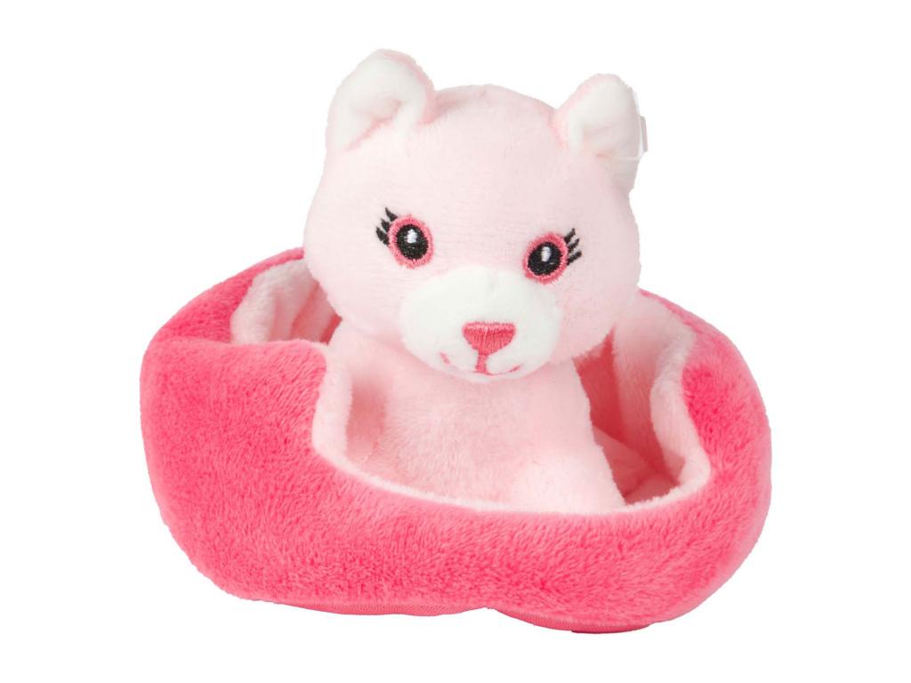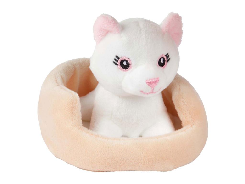 Szupercuki plüssmacska kosárban. Ez az aranyos kiscica új lakóhelyet keres a kosarának, talán nálad? A puha plüssállat mérete 11 centiméter, és 24 hónaposnál idősebb gyermekek számára alkalmas. Többféle változatban kapható, szállítás véletlenszerűen.